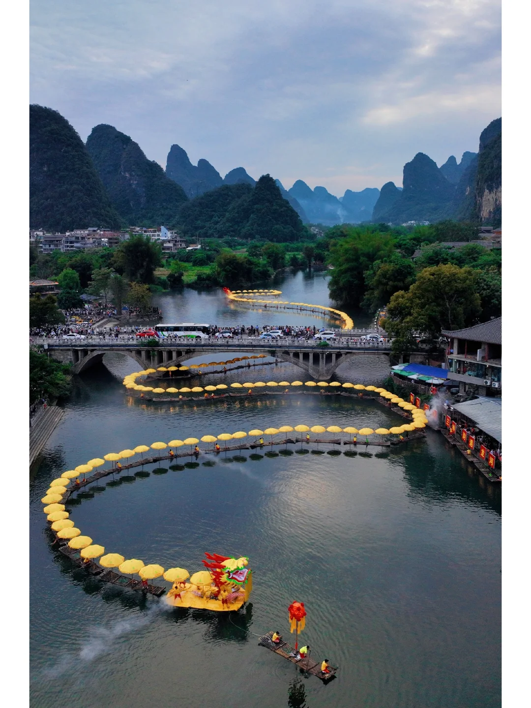 🏞 富里桥:始建于明代永乐年间,距今已有500多年历史。 是阳朔县最高最圆的单拱石桥,倒影如一轮满月