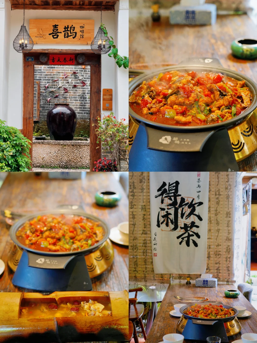 ✅ 喜鹊咖啡馆:啤酒鱼🐟 的肉质细腻,竹筒鸡🐓 很是鲜美(🐓 是鸡圈里现抓现杀的)。有免费停车位