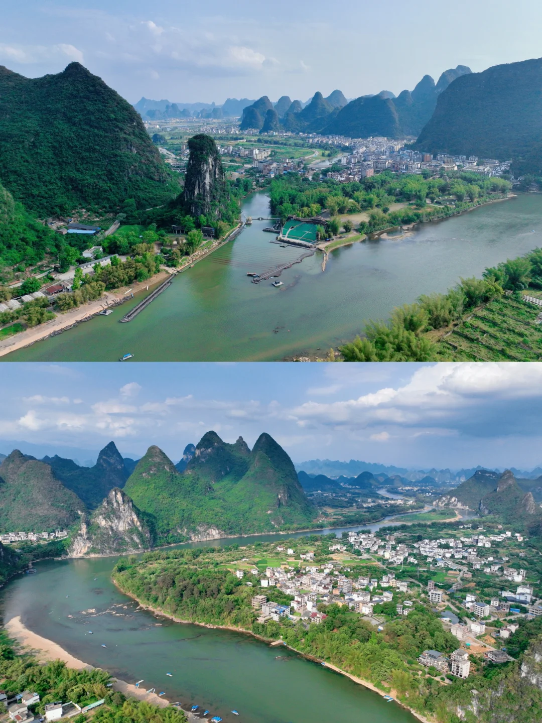 🏞 木山榨:藏在漓江边的世外桃源,非常经典的漓江山水景色。视野开阔,大片河滩适合露营