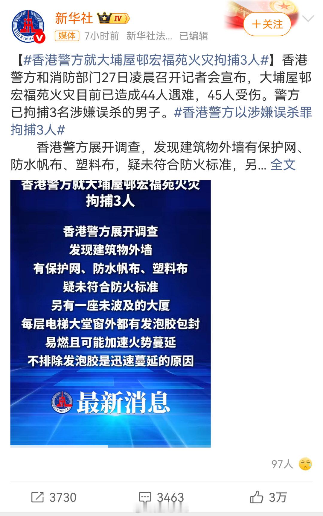 香港火灾已致44人遇难香港至今还在用竹竿做脚手架,这一点就非常离谱,这是有多么大的行业垄断阻力,希望这次事件能让这些人在利益和安全之间做出正确的选择,不要再发生如此的悲剧