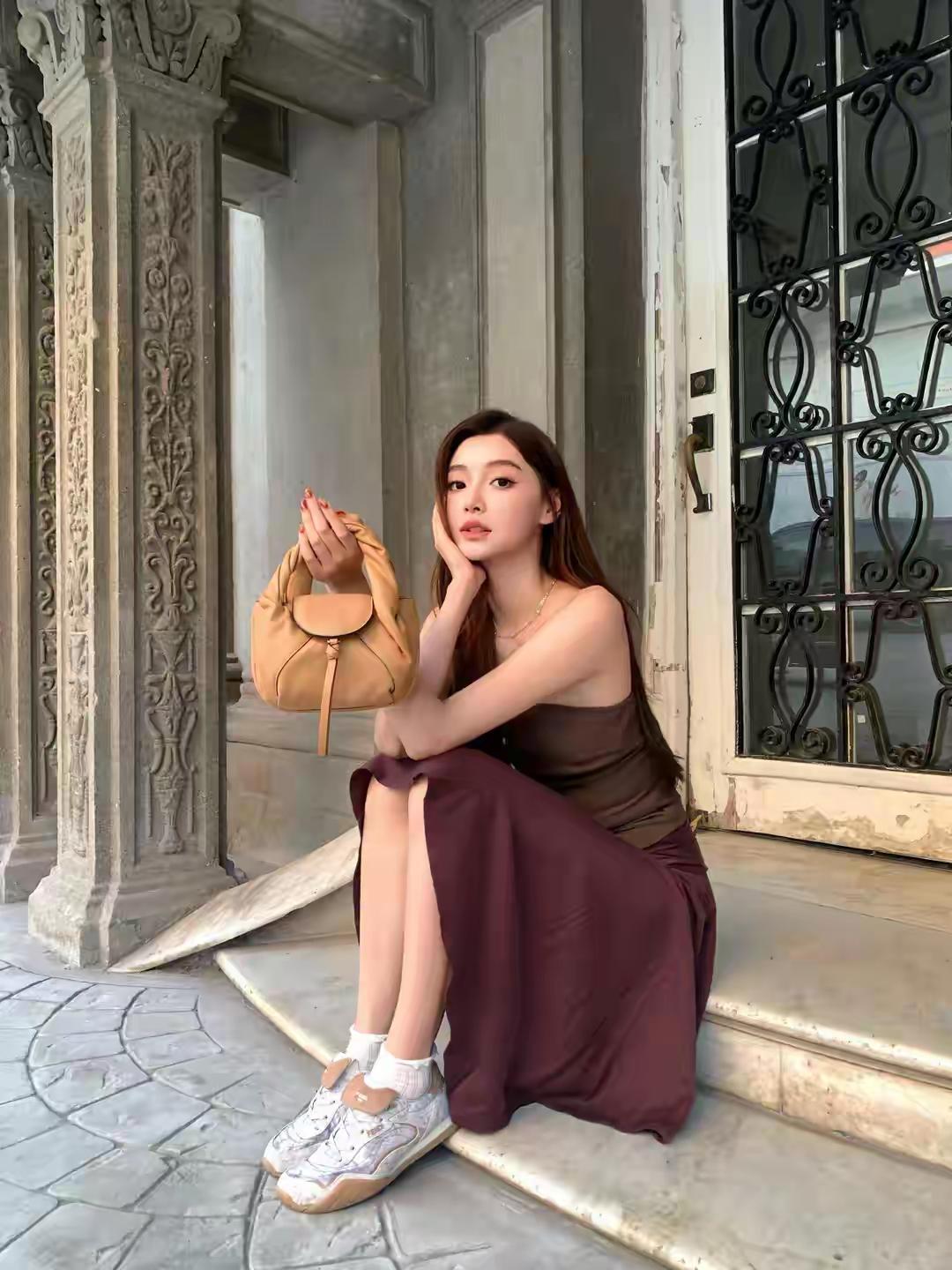 都市优雅风,棕色大衣搭配黑色高跟鞋,时尚又舒适。