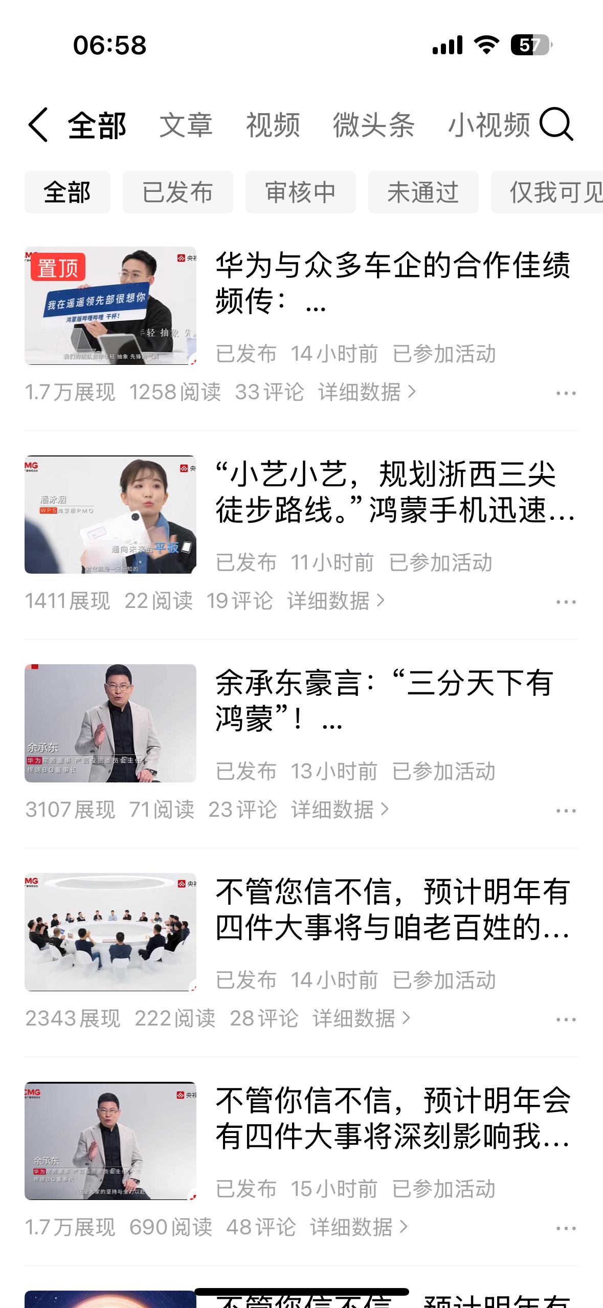 一觉醒来, 昨天写的鸿蒙征文, 阅读量过关了, 总数刚刚超过2500, 写了整整6篇! 昨天下午刚刚想出去溜达一下, 突然发现来了新的征文, 马上开始准备材料, 阅读征文写作要求、 浏览视频资料、截图, 然后开始写, 一口气写了三篇, 看看展限量,感觉阅读量有点难, 继续写,感觉还是难, 再写,抽中一个¥0.88的小红包, 写到第六篇,从下午写到晚上, 歇口气吧, 期待着, 一觉醒来, 静待花开2500阅读量, 感谢友友大力支持! 坚持就是胜利!