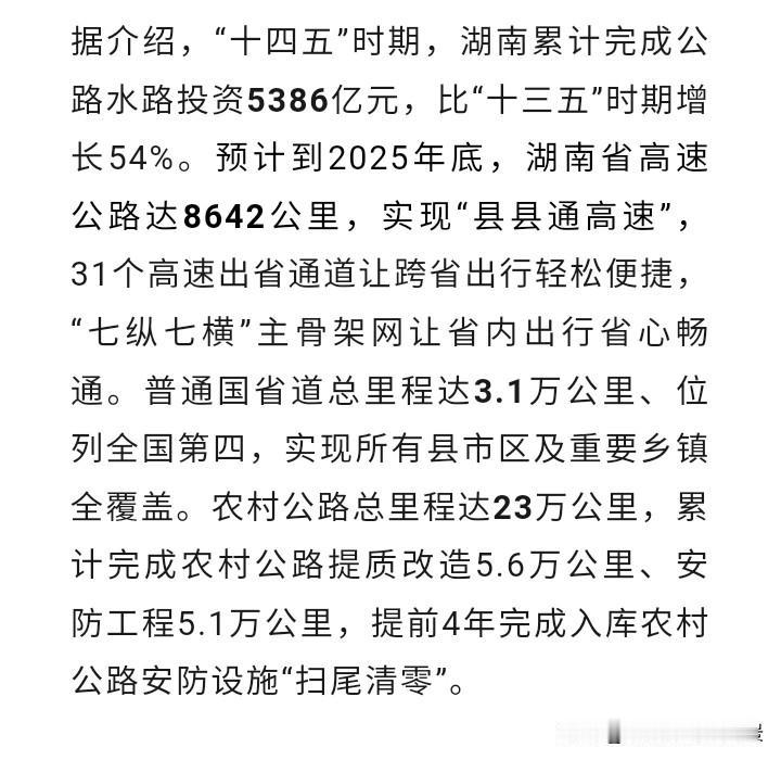 除了高速外,湖南国道和省道建设更是厉害,总里程达到了3.1万公里,位居前四,并实现了大部分乡镇都有省道以上的高等级公路,这在之前不敢想象,如今竟然变成了现实。