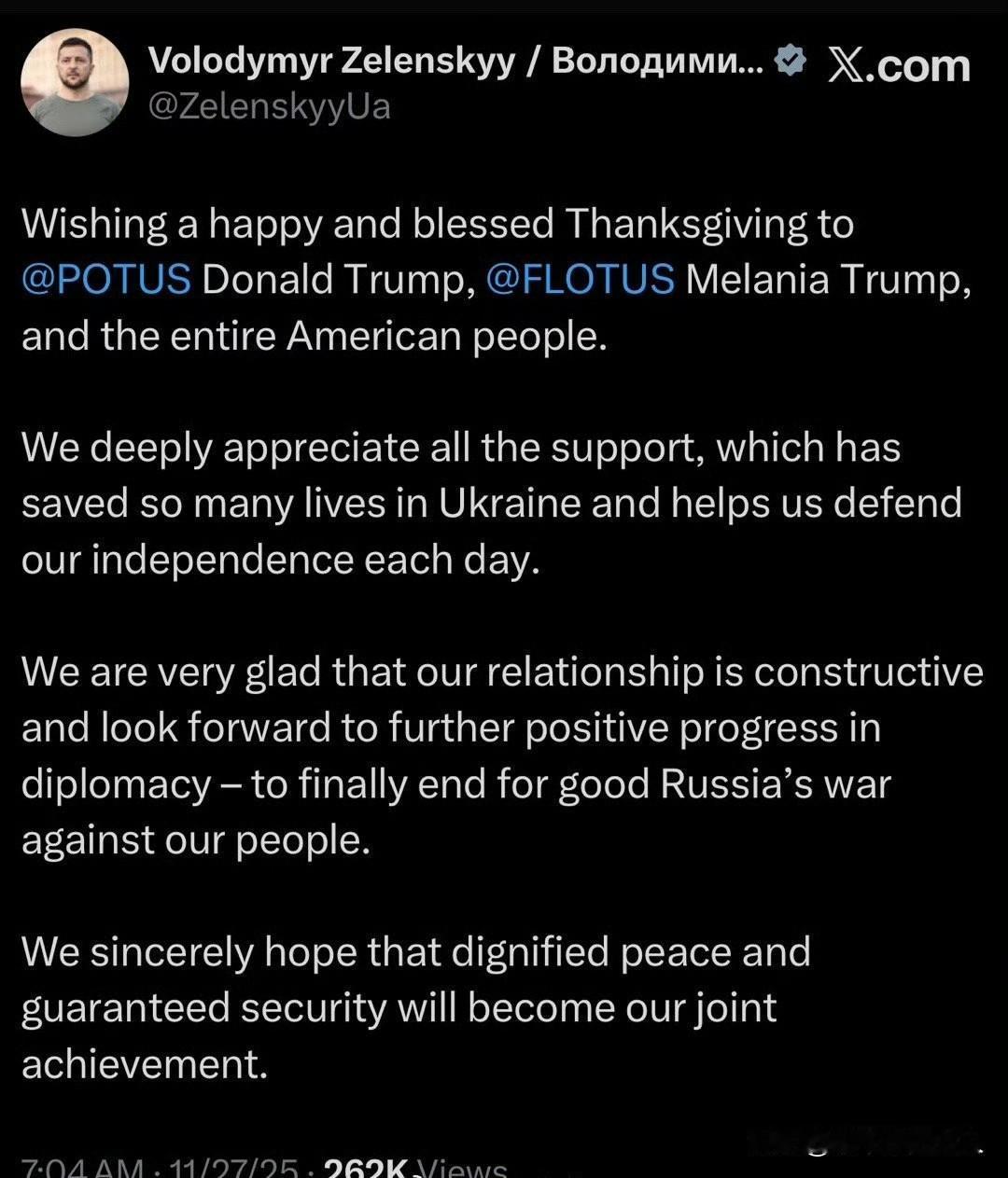 一封感谢信! 感恩节到了,泽连斯基写给特朗普及其夫人的……除了感谢就是感谢,特朗普可再也不要埋怨泽连斯基没有一句感谢的话了。