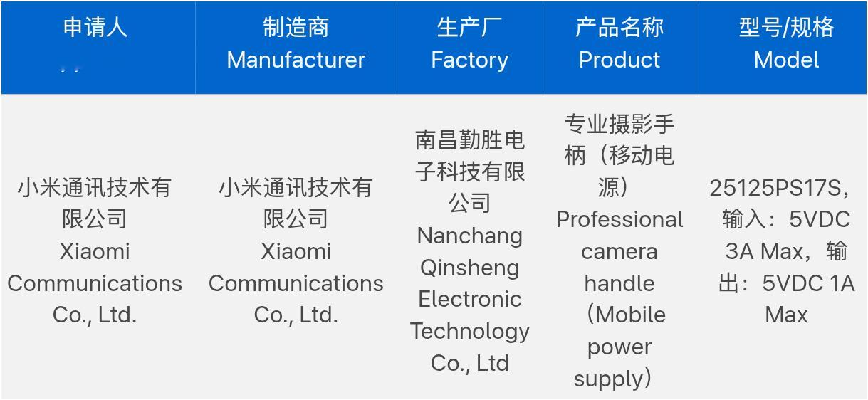 小米新款专业摄影手柄,25125PS17S,同样可以当移动电源,小米17 Ultra专属影像配件,首款三证齐全的骁龙8E5超大杯,档期优势大大滴