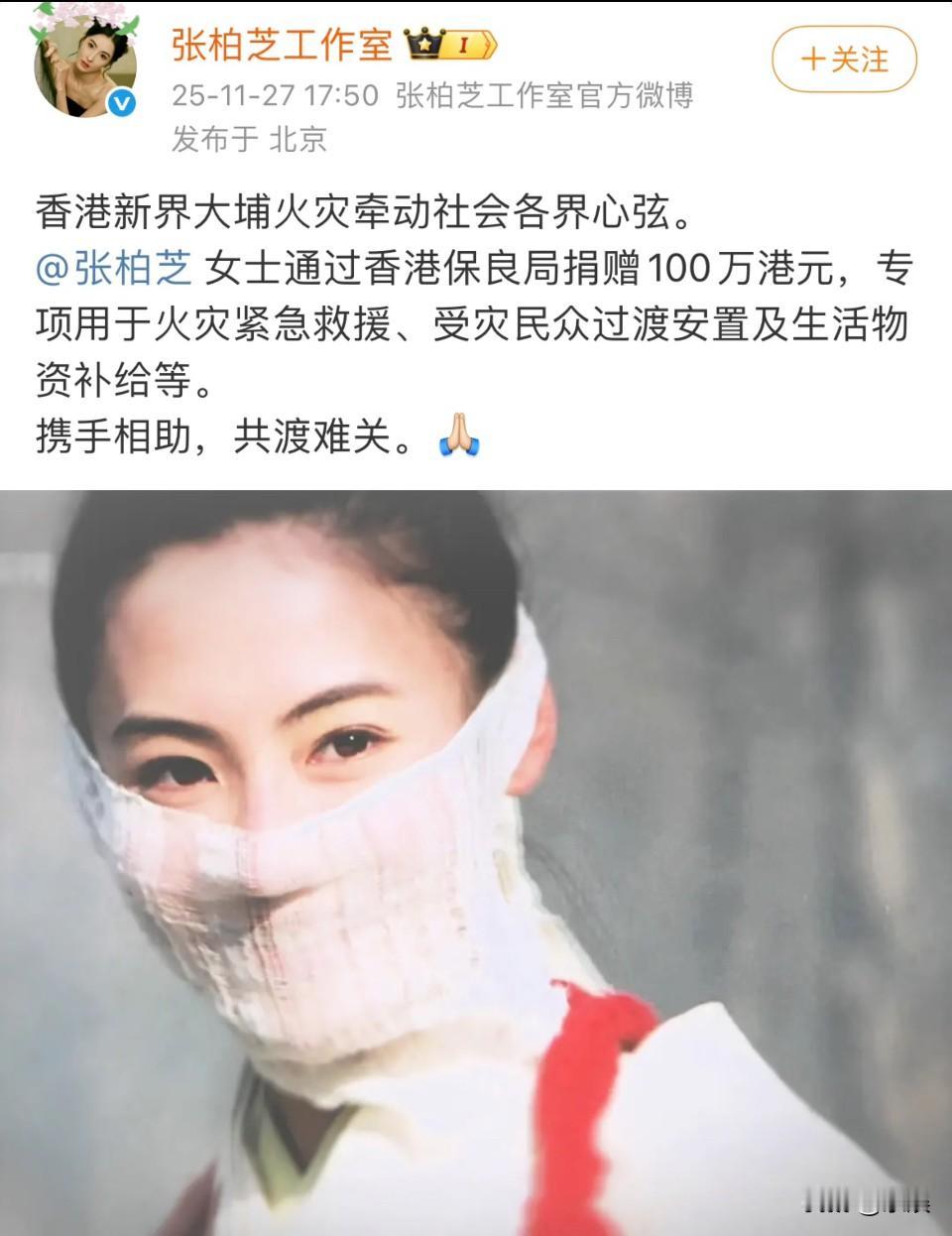 张柏芝捐100万港元 愿香港早日度过难关🙏看了她ins、她在93那天发了ins、很爱国又漂亮的张柏芝。 看《一路繁花》,感觉她真的是一个很善良,很简单的人。想起以前向太一直喷她,她也没有出来为自己说半句。反正一句话:人总会反反复复爱上张柏芝![赞]张柏芝