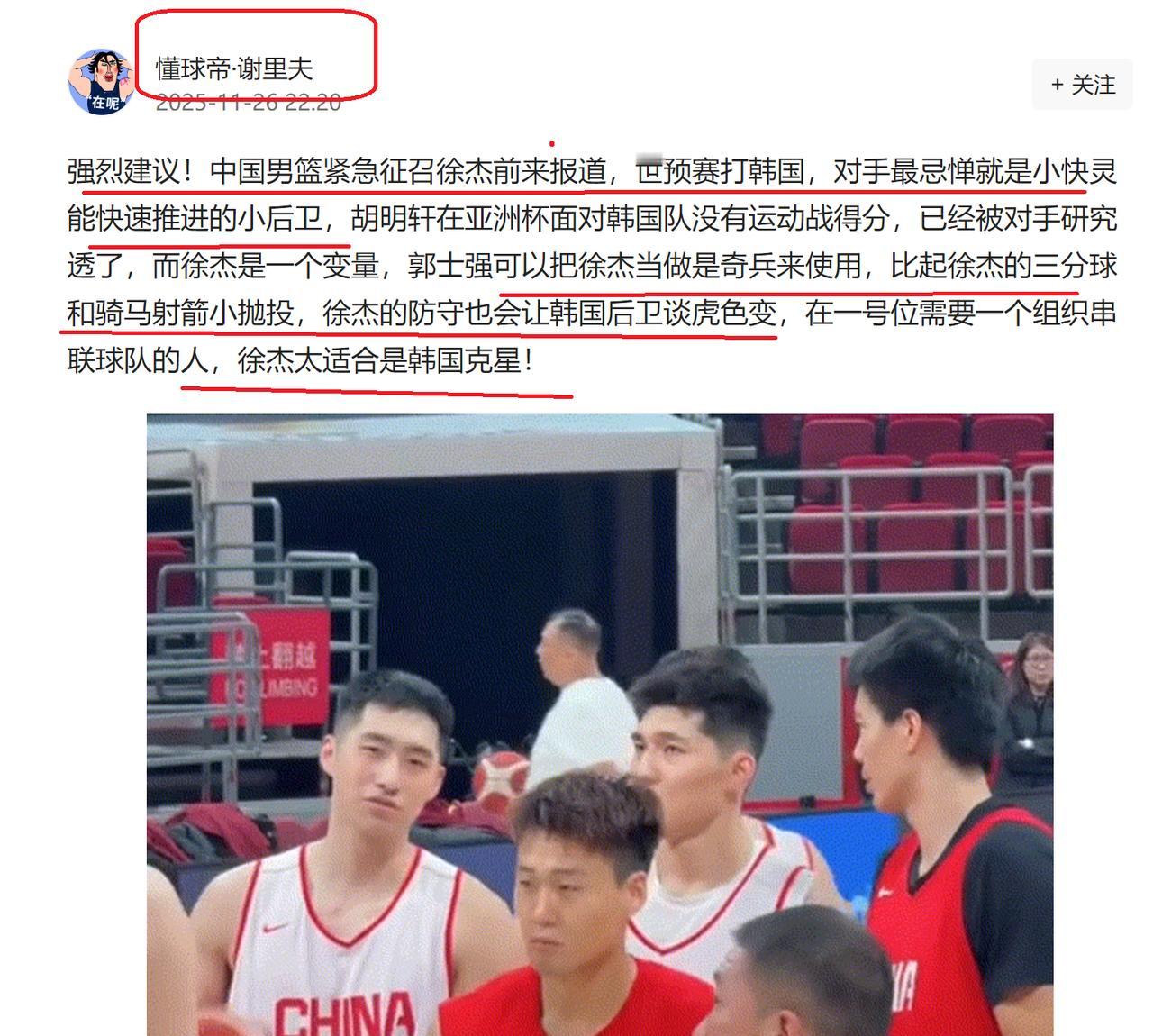 争议!男篮12人大名单,引起辽宁队球迷不服:强烈建议郭士强召进广东队一人,没错,就是徐杰,韩国队打小快灵,徐杰能够帮助中国男篮破冰。 为了准备与韩国男篮的比赛,在昨天晚上,中国男篮正式公布了12人参赛大名单,然而,随着中国男篮大名单一出,就引起了很多球迷的争议,特别是后卫线上就出现了2个大争议,一个就是赵睿无缘本次比赛,众所周知,赵睿是中国男篮最好的后卫,他进攻能得分,防守也是实力出众,同时,他的组织串联能力,也是顶尖的存在。但是,赵睿此番却落选了。 还有一个就是辽宁队后卫王岚嵚再一次入选,对于这样的个选择,辽宁队球迷也是感到失望,因为,王岚嵚在辽宁队都是一个替补球员,甚至,在很多关键的比赛,还被杨鸣弃用,可以说,王岚嵚的能力,与赵继伟相比,都差了很大,然而,他现在却占据了中国男篮12人大名单,所以,有不少辽宁队球迷也是感到不太理解。 有辽宁队球迷表示:强烈建议郭士强要召进广东队徐杰,因为,徐杰是一个非常全面的球员,一方面,徐杰速度十分快,另一方面,徐杰的进攻能力十分出众,能持球突破,也能够投射三分球。同时,徐杰的组织串联能力,也是相当厉害。众所周知,韩国男篮就是喜欢打小快灵,而徐杰刚好可以成为一个破冰之人,他能够利用自己的特点去击败对手。 实话实说:真的没有想到辽宁队球迷会站出来帮助徐杰说话,这一点很难能可贵,也许,这也有一些调侃的意思,有嘲讽徐杰没有进入中国男篮大名单。但是,不管怎么说,在这个时间,辽宁队球迷依然不忘记徐杰,就充分说明了,徐杰是一个非常优秀的球员,在很多时候,徐杰用自己的技术,用自己的人格魅力去影响到了辽宁队球迷。 其实,就面对韩国男篮的实力而言,徐杰来组织串联没有一点问题,毕竟,徐杰在CBA联赛,已经是最顶级的后卫,而且,徐杰的防守,也是相当不错。 那么, 徐杰应不应该进入中国男篮大名单呢?各位看官,您有什么看法?