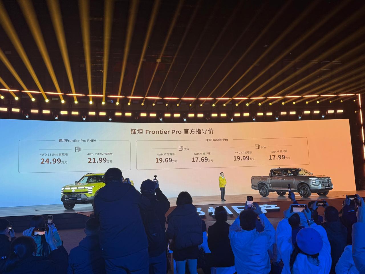 郑州日产锋坦Frontier Pro上市,售价16.99万元-24.99万元。新车有三种动力可选:2.0T汽油发动机最大功率190kW,峰值扭矩400N·m,匹配8AT变速箱;2.3T柴油发动机最大功率140kW,峰值扭矩500N·m,匹配8AT变速箱;插混版搭载1.5T+前置电机组合,综合功率320kW,综合扭矩800N·m,匹配4档DHT变速箱,纯电续航131公里。【来自懂车帝车友圈】