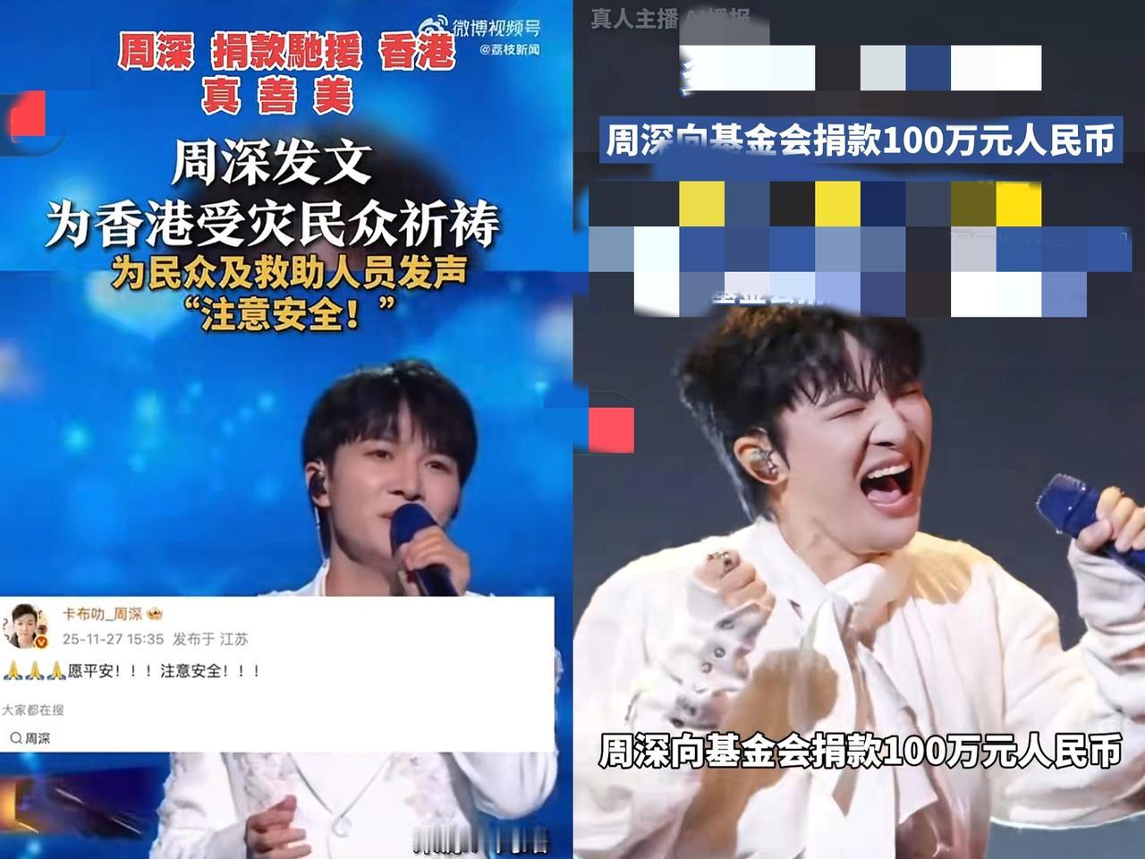 这下周深真出名了, 不仅仅是粉丝知道, 全国人民都知道了,居然自掏腰包100w捐款,没靠工作室,没用公司账,拿的是自己税后收入,这也太实在了吧! 100w可不是小数目,他这份真诚善良,真让人感动到哭! 周深实力那是顶级的,人品更是没话说。香港这次事儿,就猜到他肯定会出手,之前西藏地震、洪灾,他前前后后捐了四次! 这满满的大爱,不愧是宝藏男孩。善良真诚的人总会有福报,周深就大胆向前冲吧! 宝藏男孩,名不虚传。善良真诚的人会有福报,你努力的往前走吧,你的光芒很温暖,你的身影很挺拔,感谢你为香港捐款,谢谢你[祈祷][玫瑰][玫瑰] 你们说,这样的明星是不是该多来点?