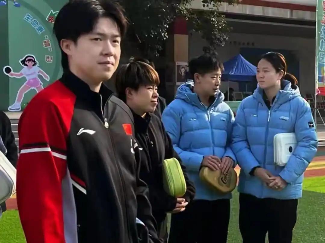 国乒参加成都国球进校园活动,王楚钦和学生切磋球技玩得不亦乐乎