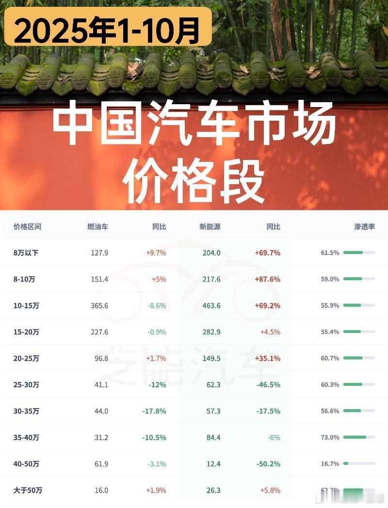 中国车市正经历价格生态位重构,不同价位区间各有不同玩法。中间价位是市场基本盘,撑起燃油车与新能源车,适配多数家庭首购或换购需求。低价位是新能源主场,适配代步,优势很明显。高价位则成燃油车避风港,新能源在此出现断层。各品牌竞争也分层,比亚迪覆盖广,新势力在中高价位发力,部分品牌还在高端区间快速成长。