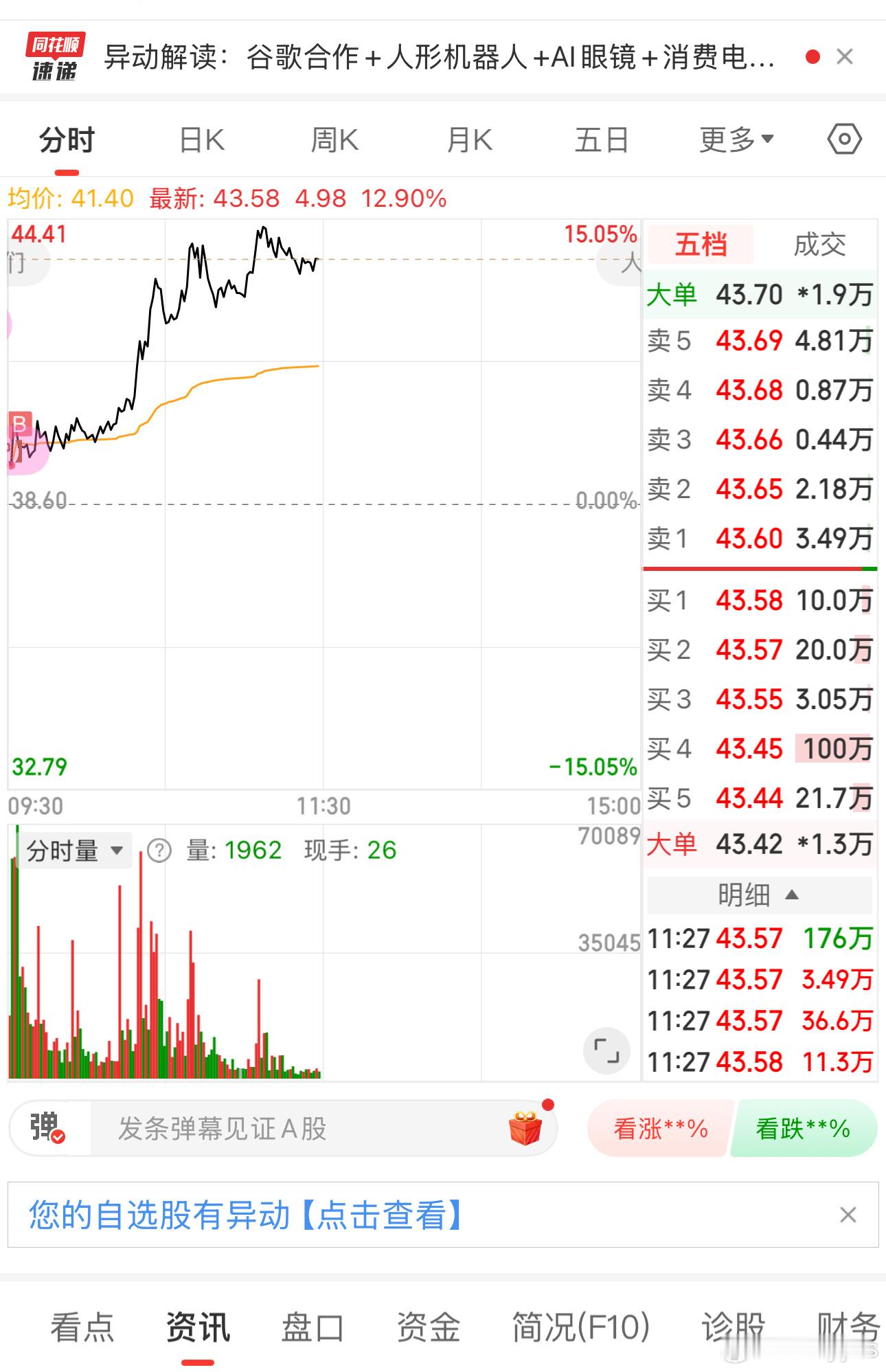 今晚英伟达机器人有个发布,不少个股已经提前反应了。Ai眼镜板块也因为阿里巴巴的产品推出在走强。尤其是机器人+Ai眼镜双概念的。