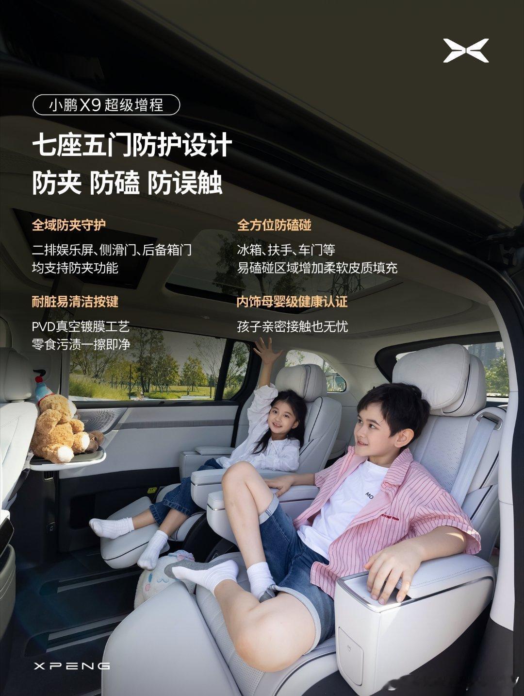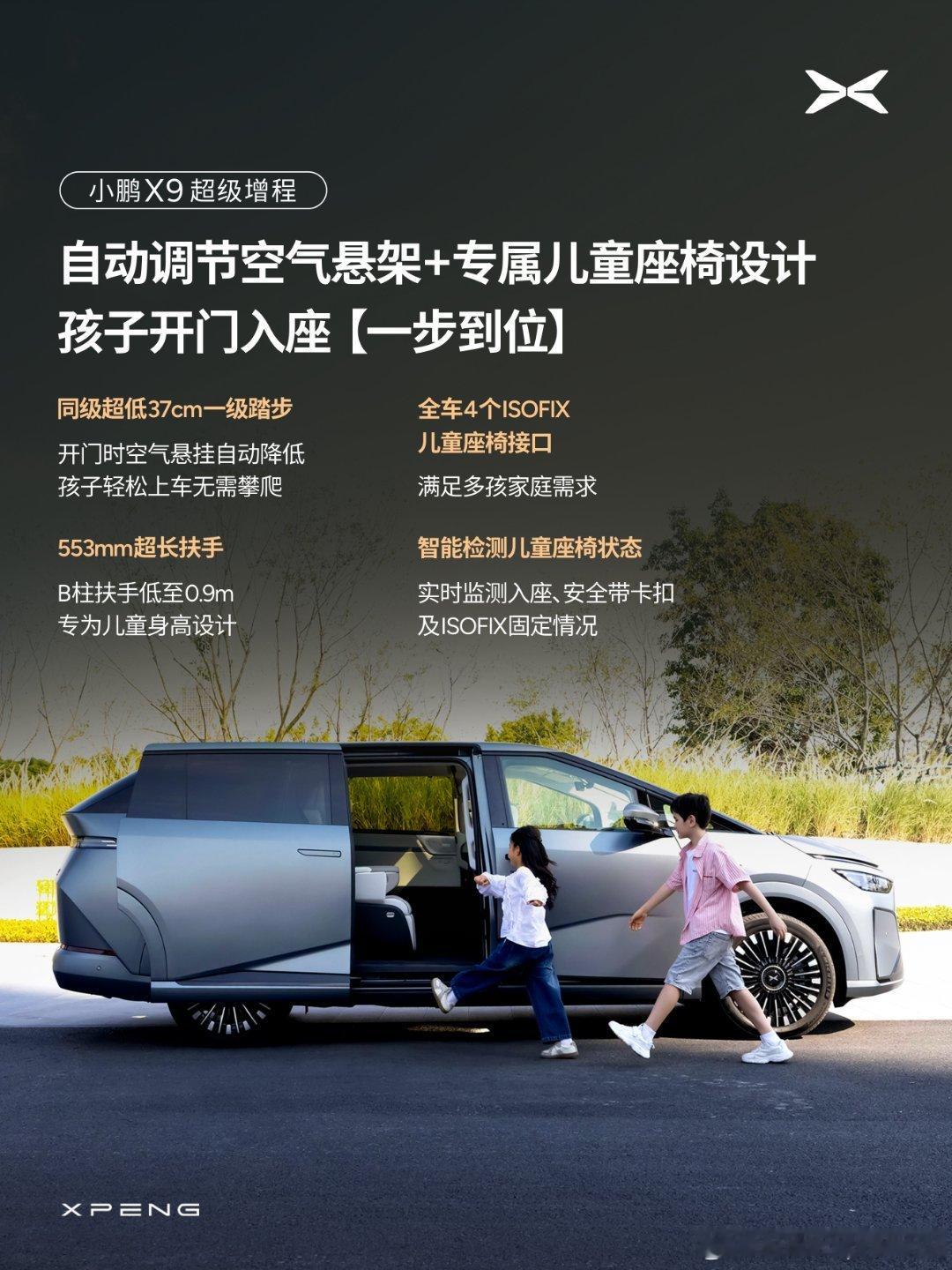 小鹏X9超级增程首发5大儿童友好配置小鹏X9超级增程有个特别有意思的现象,它圈粉的不仅是车主,还有他们家里的“小主人”。这台“移动亲子城堡”到底有什么魔力?五大儿童友好配置,游乐场级大空间、全方位安全防护、秒睡级静谧体验、专属二排儿童空间、儿童友好上车入座体验,隐藏在细节里的真诚才能看出车企是不是真的对用户用心!