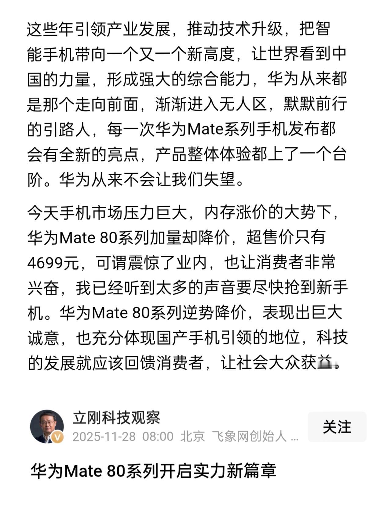 华为Mate80迎来惊爆价,通讯专家项立刚大加称赞。 最近有一款手机的热度特别高,那就是华为Mate80。这款手机颜值评价较高。这款手机还有独一无二之处,在没有网络时还能紧急通信。 通讯专家项立刚说这款手机加量又降价,把消费者整兴奋了,把业内给震惊了。 作为鸿蒙生态下的一款手机,当消费者使用时,官方可以得到更多的反馈消息,通过对这些反馈信息进行进一步改进,下一次出来的手机那就更加劲爆了。