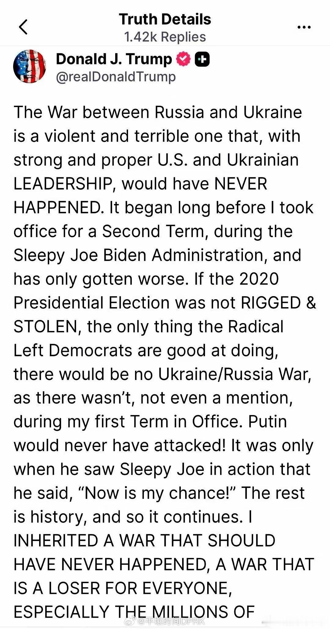 特朗普发了个文,就差指着泽连斯基鼻子骂:你个白眼狼。通篇就一个意思:要是我在,仗根本打不起来。普京不敢。都是因为你们选了那个“瞌睡乔”,他一上台,普京一看,机会来了。