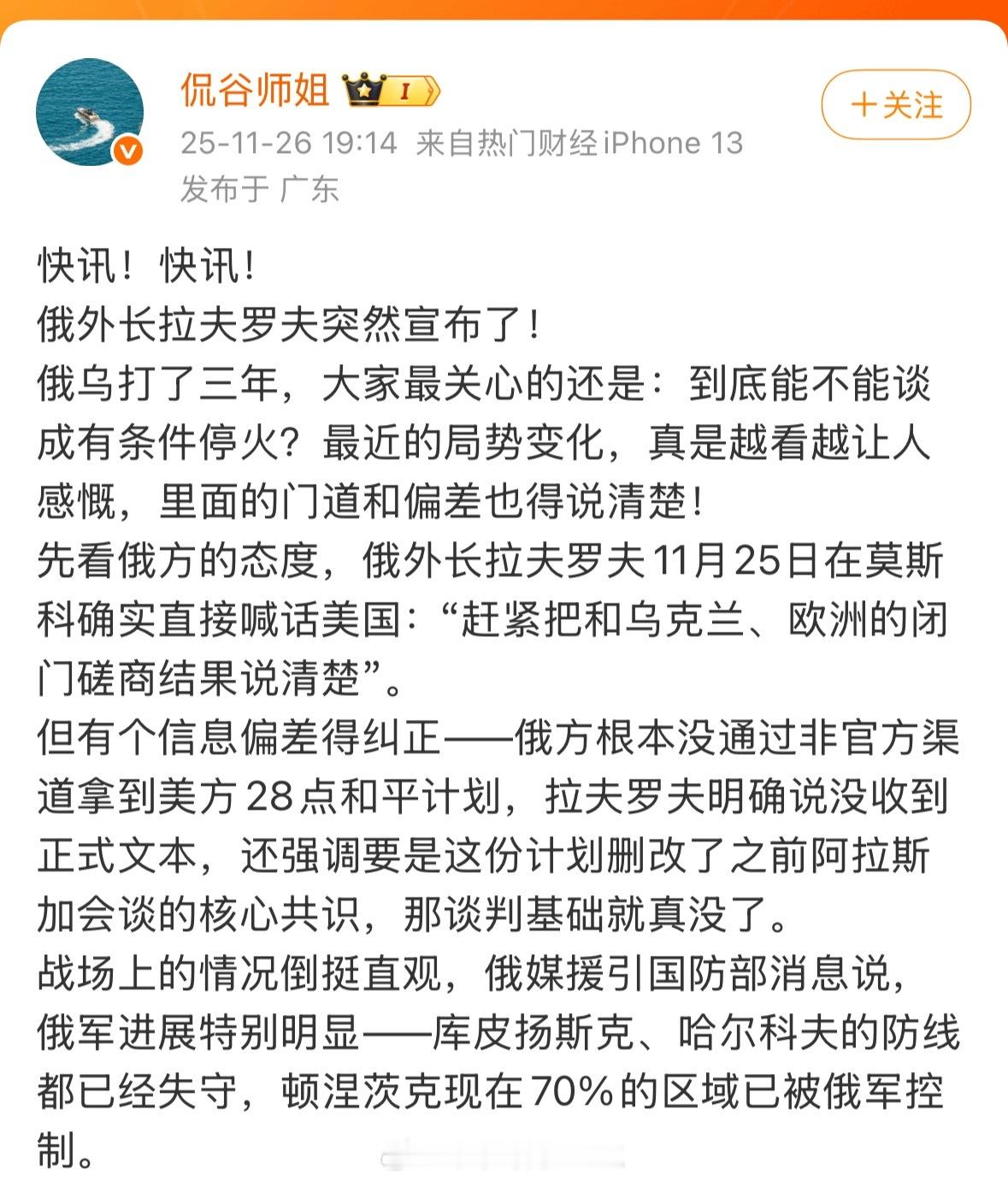 俄方根本没通过非官方渠道拿到美方28点和平计划,拉夫罗夫明确说没收到正式文本,还强调要是这份计划删改了之前阿拉斯加会谈的核心共识,那谈判基础就真没了。