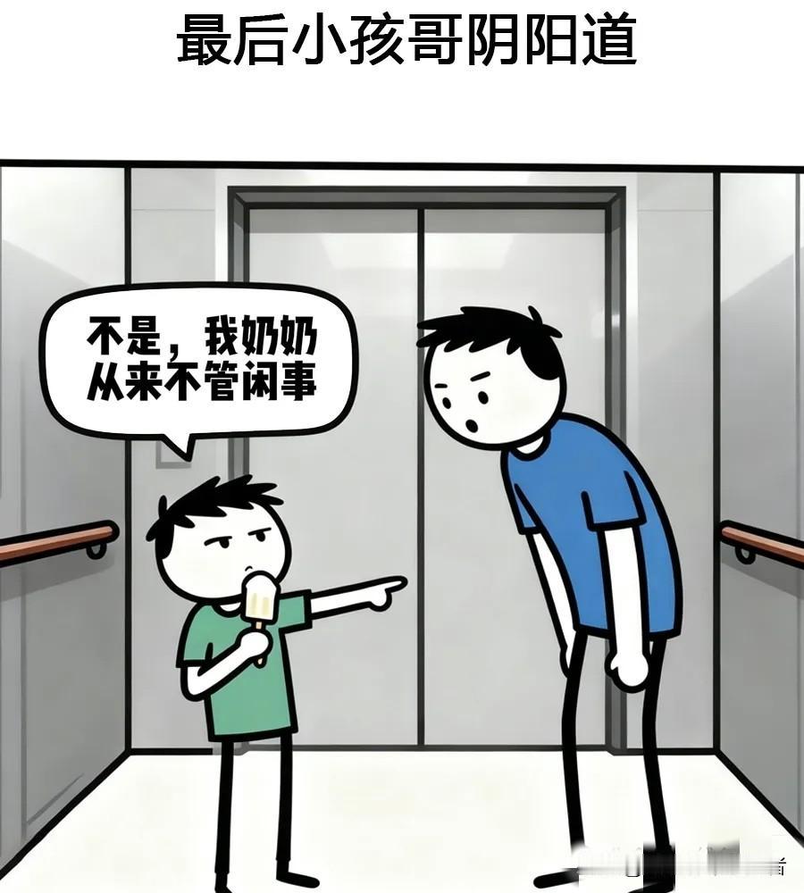 趣味漫画:在电梯间看见一小孩子在吃雪糕,我说会吃坏身体的,小孩:我的奶奶活了103岁,我:吃雪糕吃的吗,小孩不是,我奶奶从来不管闲事