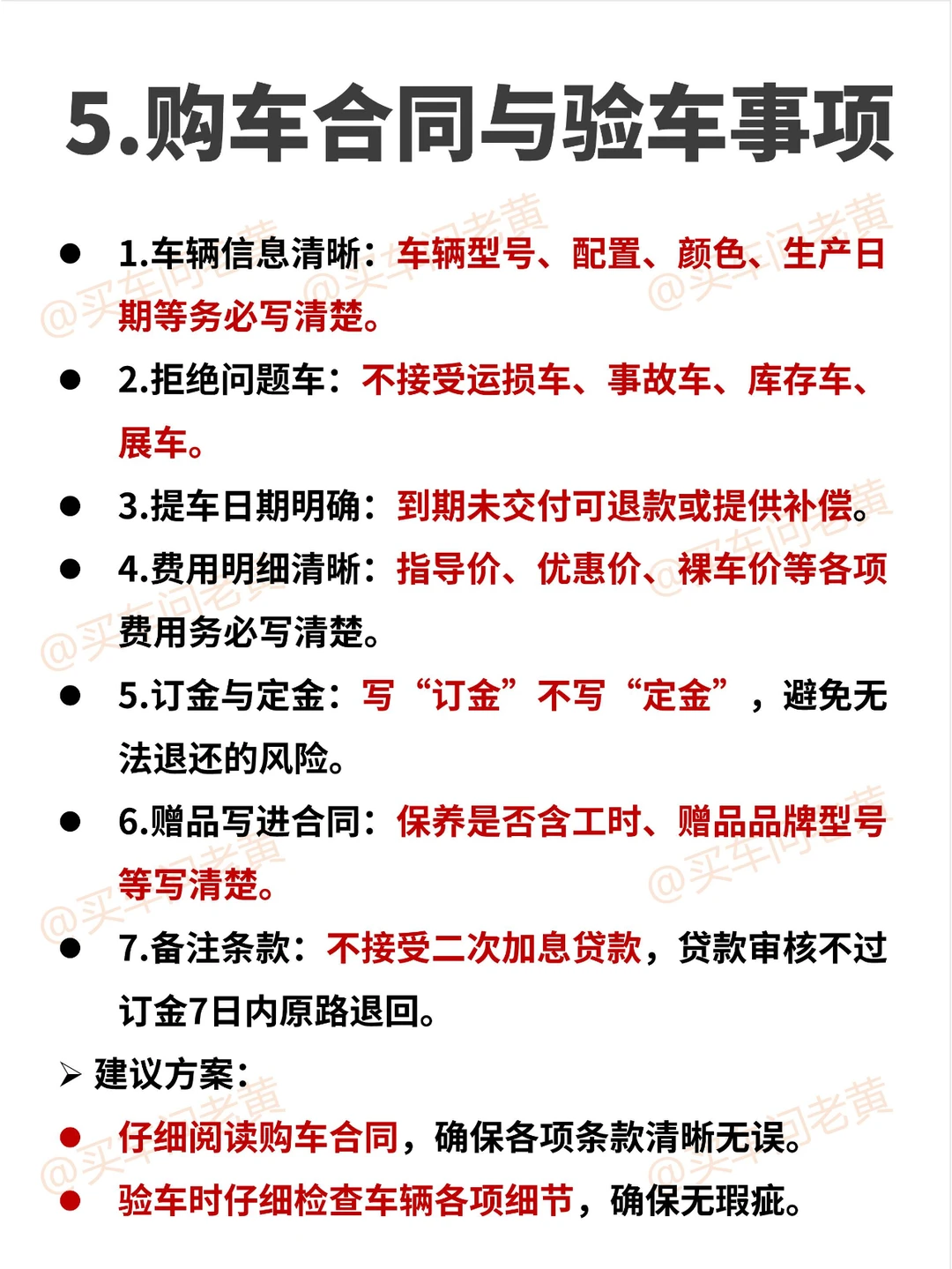 签合同前,车辆信息得核对清楚,不接受任何瑕疵车。提车日期、费用明细,都得写得明明白白。订金还是定金,也得分清楚,不然到时候退不了,可就亏大了!
