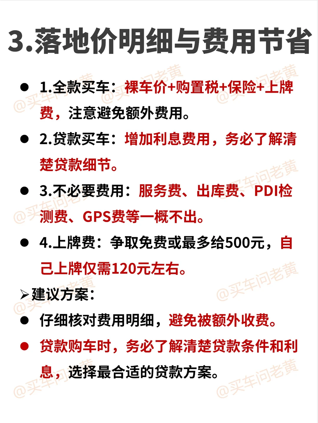全款购车,裸车价、购置税、保险、上牌费,一个都不能少。贷款的话,利息也得算上。记得,有些费用,比如服务费、出库费、PDI检测费、GPS费,都是可以省的!上牌费嘛,争取免费或者最多500块搞定,自己上牌也就花点儿小钱。