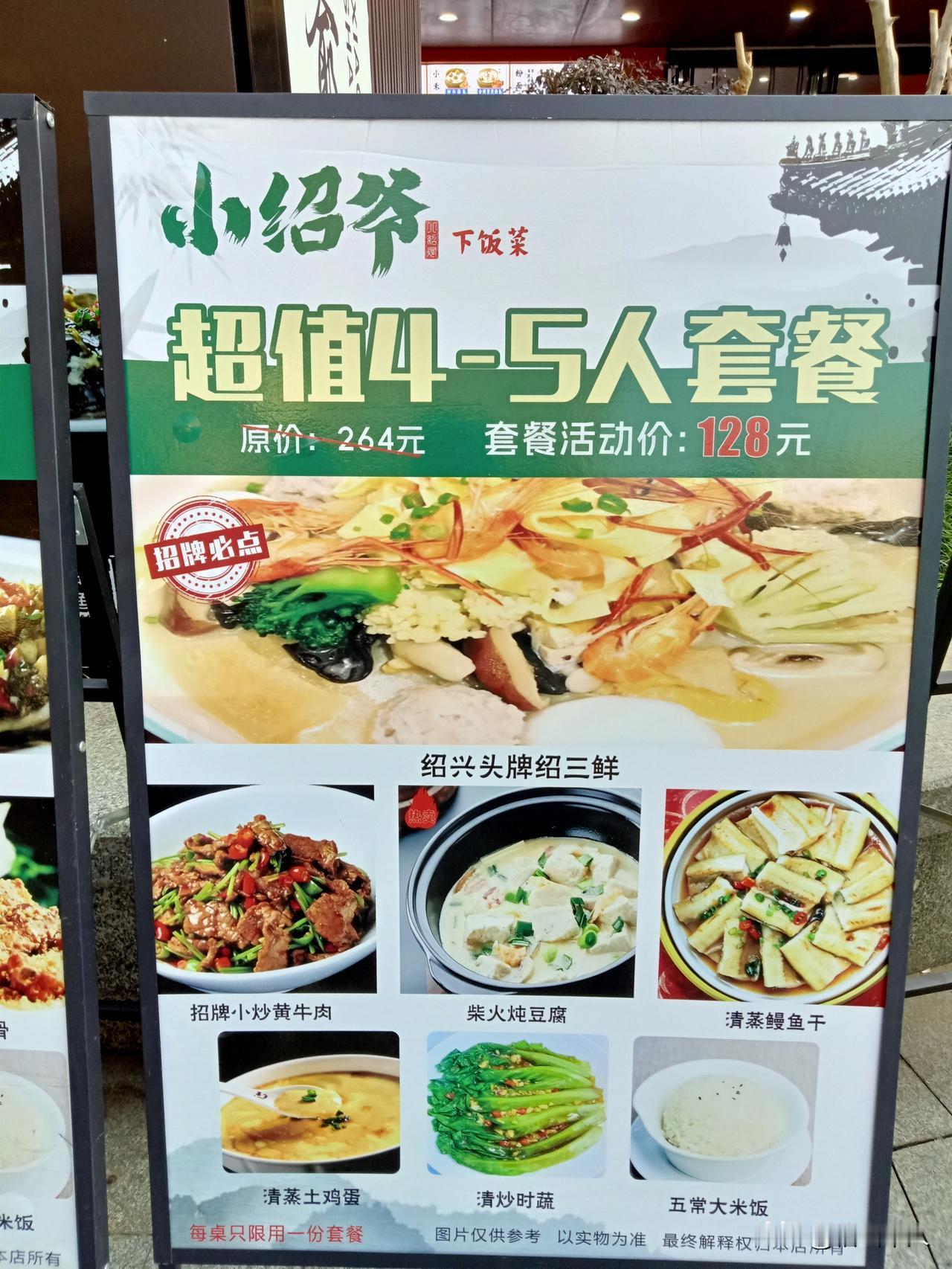 绍兴越城区府横街府桥头附近“小绍爷”饭店推出的3种套餐,觉得怎么样?