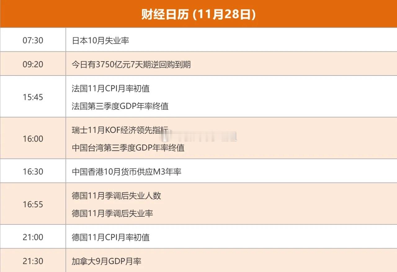 11.28股市早知道:1、外盘汇总:还是涨,如图一。 2、交易提示:如图二。 3、财经日历:如图三。 4、三大指数:1)大盘:继续看涨2)创指:继续看涨3)科创50:继续看涨 5、重要新闻:1)国家发改委:将健全具身智能准入和退出机制,营造公平竞争的市场环境;2)国务院常务会议:讨论并原则通过《中华人民共和国注册会计师法(修正草案)》,决定将草案提请全国人大常委会审议;3)交运部、财政部已下达377亿元推动国家综合货运枢纽建设。 6、市场动态:1)万科集团相关人士:对展期事件未予置评,仅表示“以银行公告为准”;2)摩根大通:看好中国股市,将A股评级上调至“超配”。 7、公司公告:1)辰安科技:筹划向特定对象合肥国投发行股份,股票停牌;2)赛微电子:仅隔三日大基金再度减持,持股比例降至5%以下;3)一汽解放:拟与宁德时代、特来电同步增资解放时代;4)光大银行:第三大股东中信金融资产7月24日至11月27日增持公司A股和H股合计1%;5)迈瑞医疗:实际控制人之一、董事长李西廷拟2亿元增持公司股份;6)中曼石油:股东拟合计减持不超3%股份;7)永和智控:股东拟合计减持不超3.29%公司股份。(关注点赞+评论,陪你一起到牛市)财经今日看盘股票