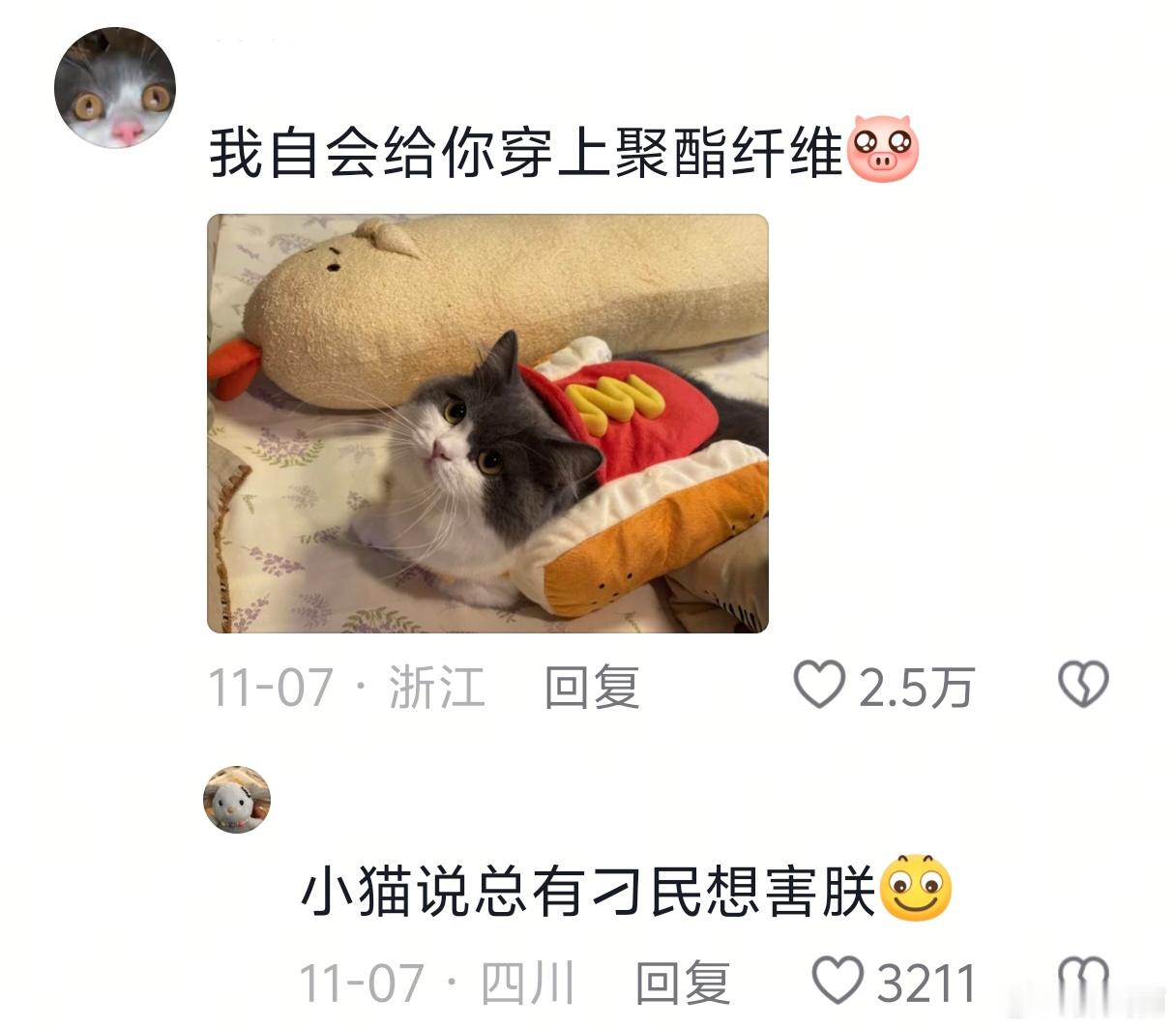 一身聚酯纤维的我怎敢碰一身100%纯猫毛的你