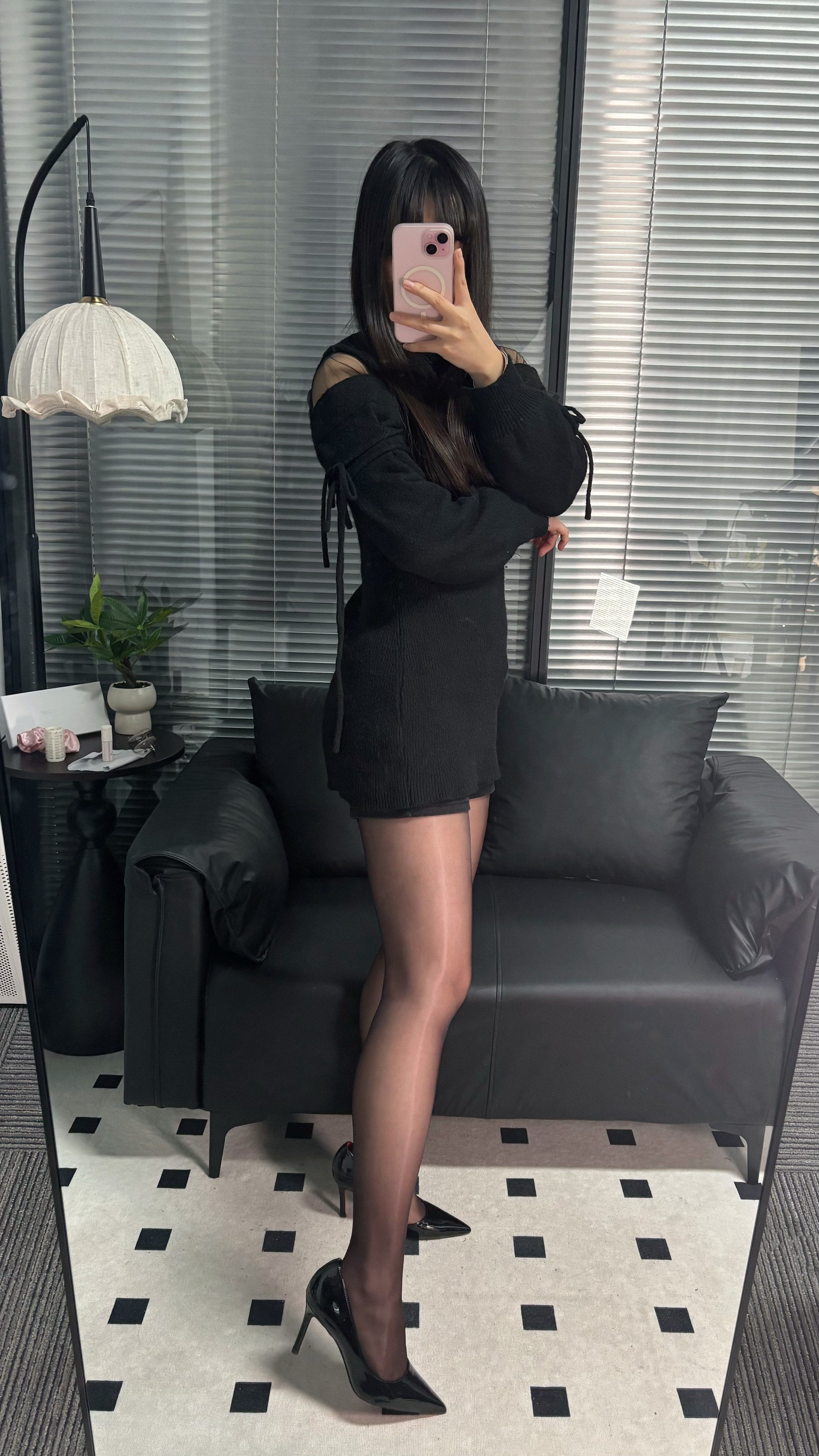 💡今日穿搭公式:基础黑裙+心机丝袜=秒变气质御姐!
