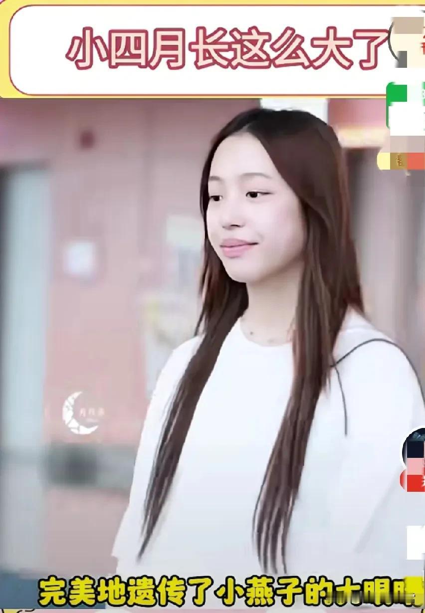 赵薇的小棉袄四月已经长成亭亭玉立的大棉袄了。 女大十大变,小四月没有变得越来越好看,感觉不如小时候漂亮了。 眼睛还行,光看上半部还有点小燕子的影子,嘴特别像她爸爸,有点凸,个子可以,不矮,应该能长到1.7米左右。 有钱人家的孩子就是自信,心理强大,无惧内部和外界的风风雨雨。