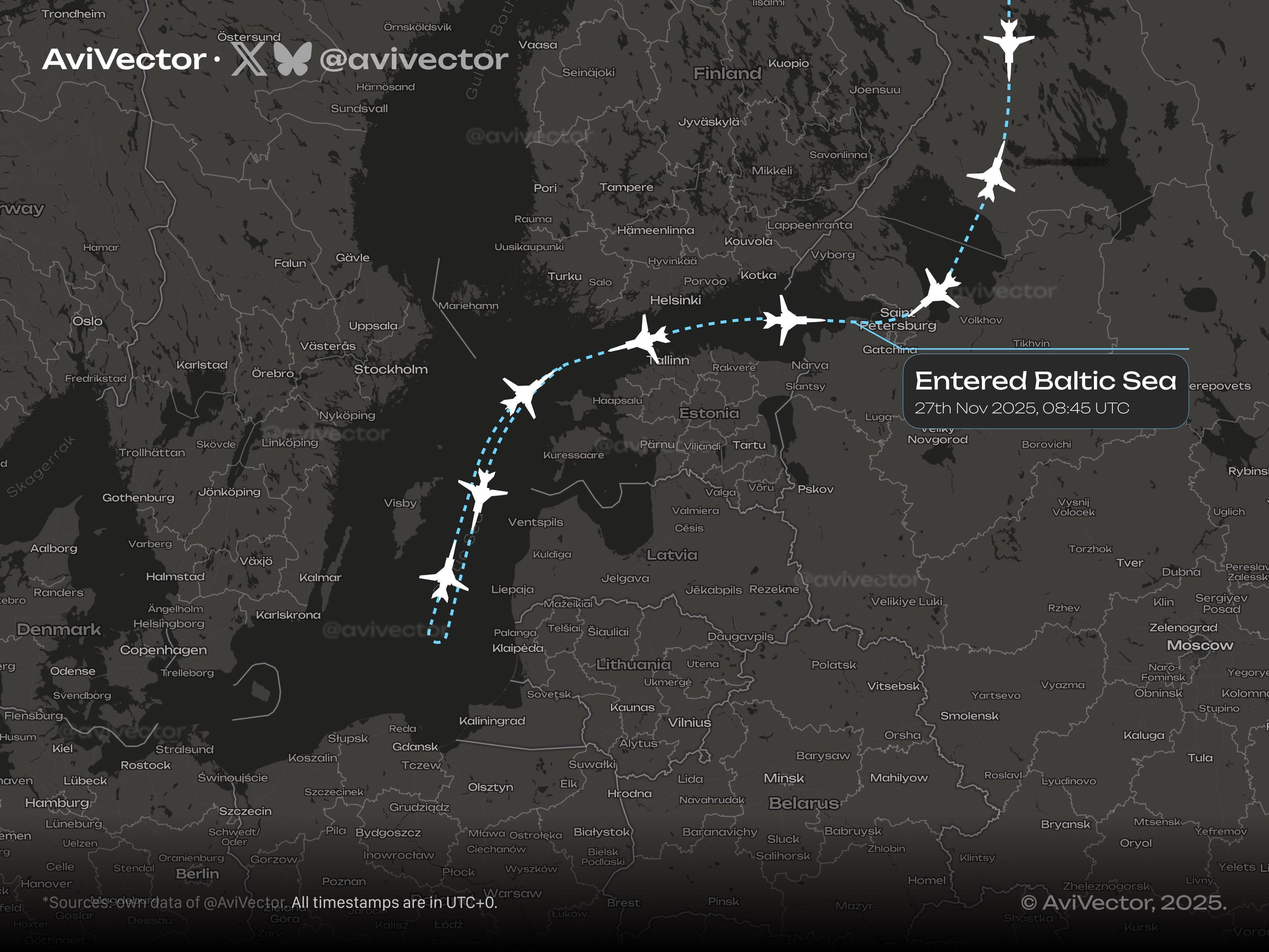 飞扬军事 俄罗斯空军3架图-22M3型轰炸机在菠萝地海上空执行了长达5小时的训练任务。整个轰炸机编队由苏-27和苏-35S战斗机提供护航。针对此次行动,瑞典空军的JAS-39“鹰狮”战斗机与意大利空军的“台风”战斗机,分别从瑞典和爱沙尼亚的军事基地紧急升空响应。
