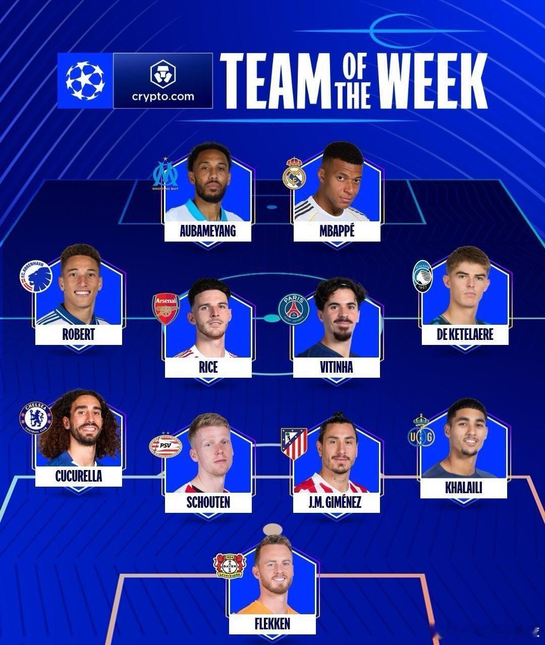 欧冠联赛第5轮最佳阵容:姆巴佩、赖斯领衔,维蒂尼亚在列欧冠联赛足球 11月28日讯 欧冠官方公布了25/26赛季联赛阶段第5轮的最佳阵容,姆巴佩、赖斯在列。具体名单如下前锋:奥巴梅扬(马赛)、姆巴佩(皇马)中场:罗伯特(哥本哈根)、赖斯(阿森纳)、维蒂尼亚(巴黎)、德凯特拉雷(亚特兰大)后卫:库库雷利亚(切尔西)、斯考滕(埃因霍温)、希门尼斯(马竞)、哈莱利(圣吉罗斯)门将:弗莱肯(勒沃库森)