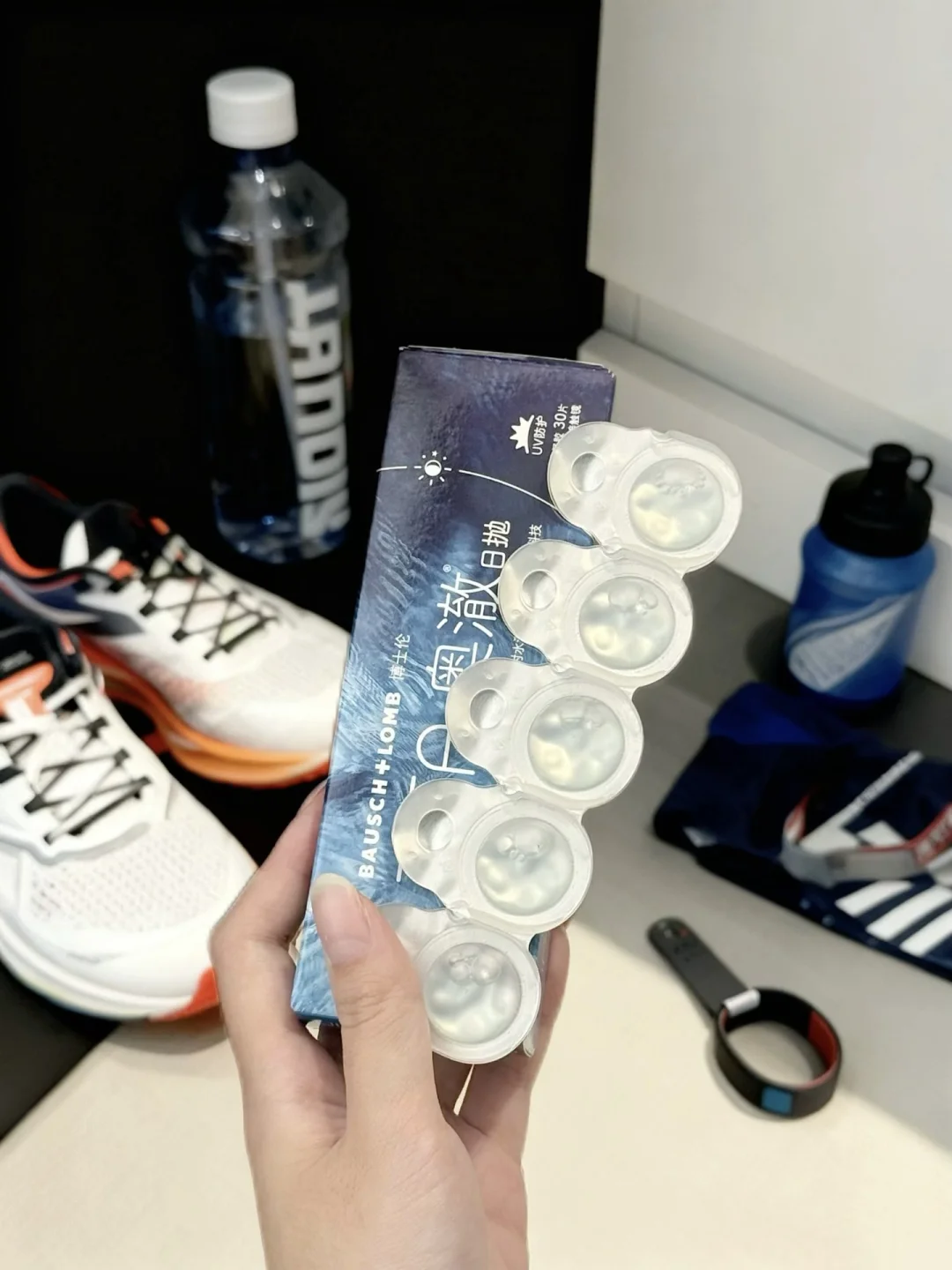 后来被爱运动的朋友按头安利了博士伦奥澈日抛,才知道专业的隐形有多香!170多年的专业眼部牌子果然靠谱,它是主打功能性的“三高”隐形——高含水量、高透氧、高保湿,属于妥妥的高配款。