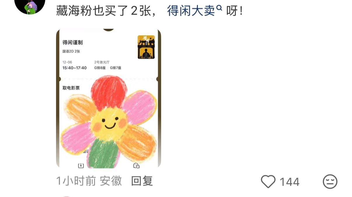 看到一个日本粉丝买了《得闲谨制》的云包场,评论里有不知情的让她分享到业主群,有人