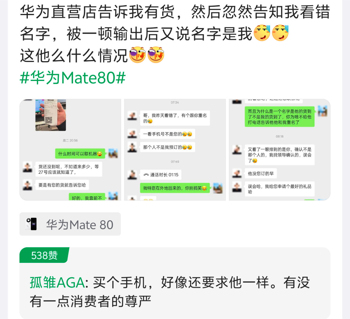专门从外地来取货,华为mate80系列今日开售来了以后发现没货了评论区的留言笑拉