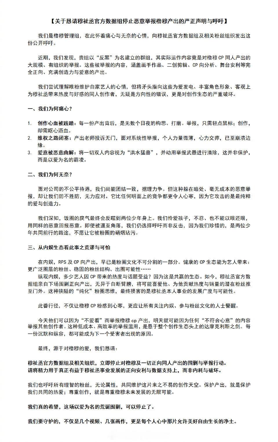 穆祉丞数据组竟然公开举橹穆产出??橹穆管理组做出回应