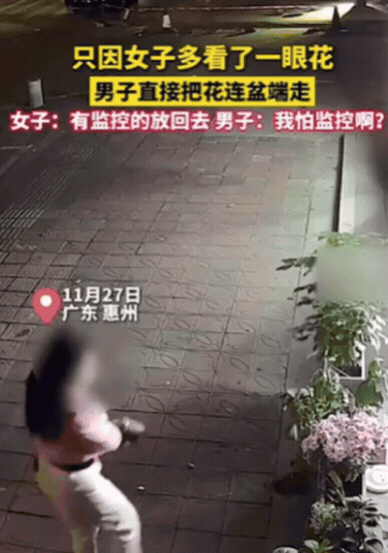 广东一女子晚上回家,只是多看了一眼野花,不料,老公竟然直接把花连盆端走,女子急得大喊:有监控的放回去,男子不仅不放,还叫嚣:我怕监控啊?店主查监控后称,你爱你的女人没错,但是请不要来偷我的花! 没文化真可怕,宠女友不是这么宠的!视频里,店老板收摊前,并没皆有把门口几盆花收进去,花开得红彤彤的,街坊邻居路过都爱多瞅两眼。那女的走着走着突然停脚,眼睛直勾勾瞅了花两秒,跟男的嘟囔:“这花真鲜亮。” 她话音刚落,男的立马凑上去,伸手就把陶盆端起来,盆底没压实的土“哗啦”撒了一脚。女的拉了他胳膊一下,声音挺虚:“别瞎拿,有监控,赶紧放回去!” 男的回头瞟了眼监控,胳膊一甩把女的手扒开,牛气哄哄地说:“我怕监控啊?” 女的站那儿犹豫两秒,没再拦,反而快步跟上去。第二天老板一开门,见花盆没了,调监控一看气得直拍大腿:“你爱你的女人没错,但是请不要来偷我的花!” 不问自取视为偷,有网友说:“偷花也是偷!有本事自己买啊,偷东西算啥男人?” “这女的也够膈应,明知道有监控还不拦,合着偷东西还挺光荣?” 最可气的是那男的,还觉得自己挺牛!不知道现在监控遍地?更别说偷东西本来就违法,真是无知者无畏! 2人的法律意识为零,三观也歪到没边。《治安管理处罚法》里明明白白写着,盗窃公私财物,哪怕金额小,也得处5到10日拘留,还得罚款;要是态度嚣张,比如这男的还敢怼监控,拘留天数还得往上加。 他俩觉得“盆花不值钱”,却不知道法律管的是“偷”这个行为,不是东西值多少钱。 更吓人的是他俩的三观:男的把“敢偷东西、不怕监控”当成“给女友长脸”,觉得这是“男人味”;女的把“不拦着男友偷东西”当成“顾面子”,还跟着笑,压根没觉得丢人。 还有人说“男的是宠女友”,可真宠从来不是这么宠的。 连几十块买盆花的钱都舍不得,还想用偷的装大方,这不是宠,是懒,是穷,更是没脑子。 无知从来不是嚣张的资本,小恶也从来不是“小事”。宠对象也好,自己做事也罢,都得有底线——别人的东西不碰,违法的事不做。别拿“一时糊涂”当借口,也别拿“宠对方”当遮羞布,规矩面前没有“小事”,丢了规矩,早晚要丢面子、付代价。 我想问,这女的要是多看两眼旁的银行,这男的会怎样?她要是多看两眼金店,这男的是不是也敢抢? 女子看了一眼花 男伴连盆端走