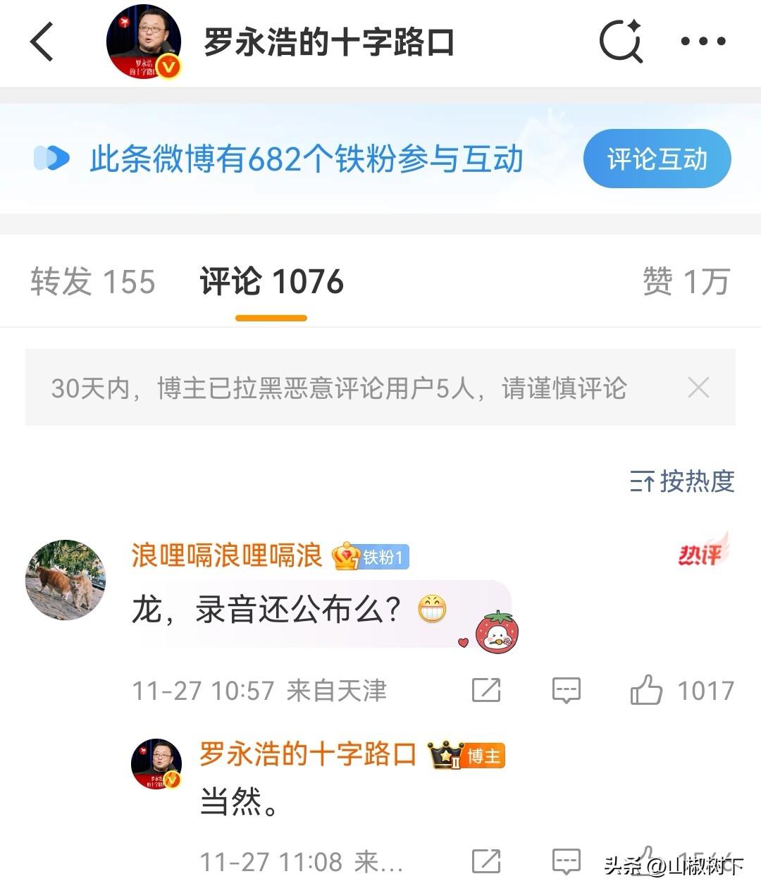 罗永浩说会公布录音的,没有接受华与华老板的道歉,也没有受到威胁,想吃瓜的群众继续蹲吧,我都蹲好几天了,没吃到瓜浑身不得劲[笑哭][笑哭]