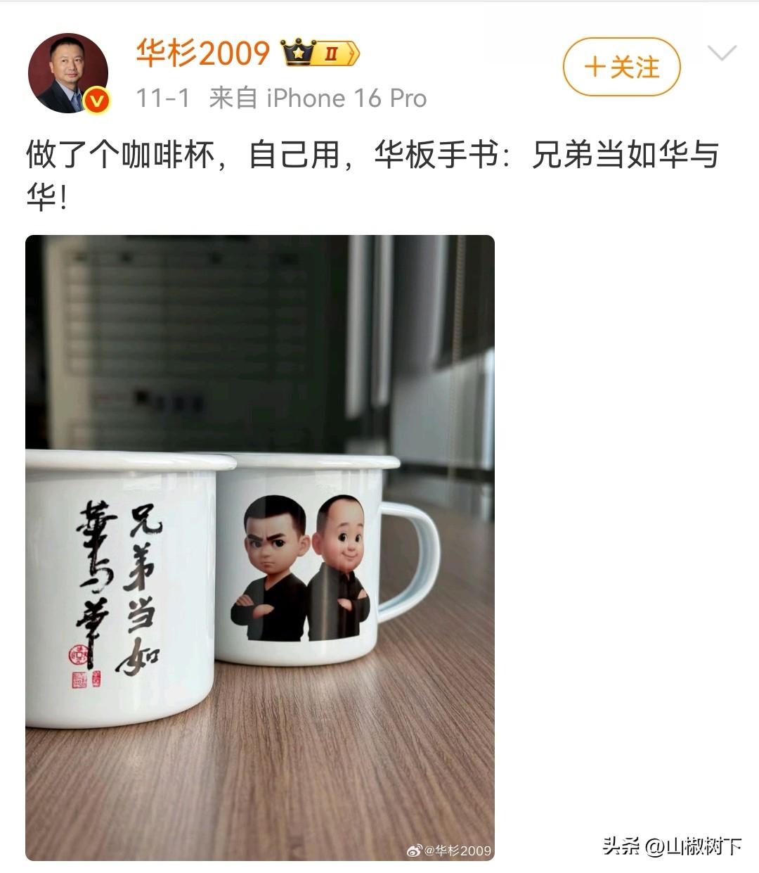 华与华老板自己整了个咖啡杯,把两个大脑袋都印在上面了,还说兄弟当如华与华! 大家觉得好看嘛[笑哭][笑哭]