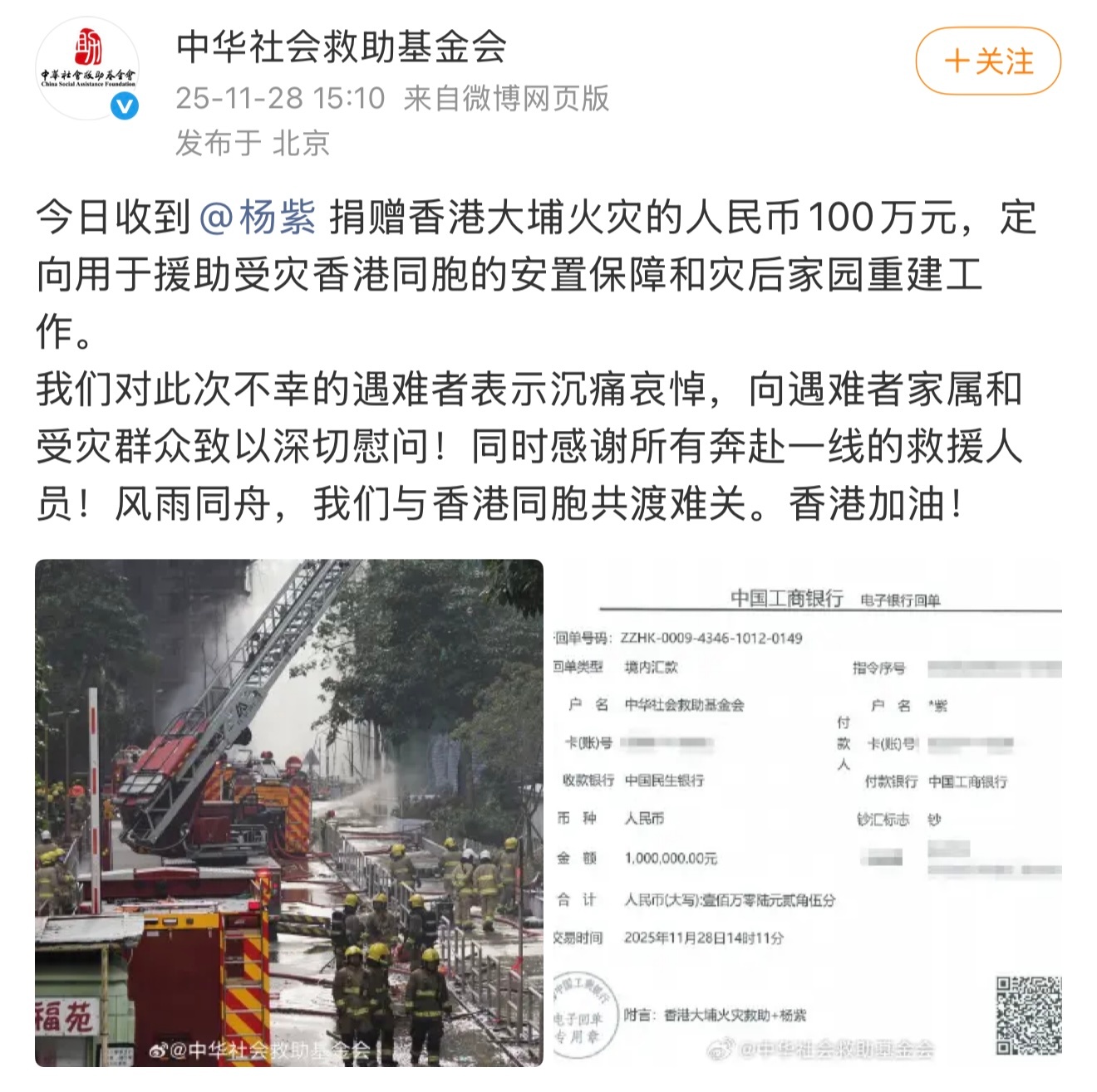 杨紫为香港捐款100万我姐这些年一直在践行着她所说过的话,身为公众人物获得了许多爱以身作则地回馈社会带来正向能量,从来没有含糊过一次杨紫捐赠100万元