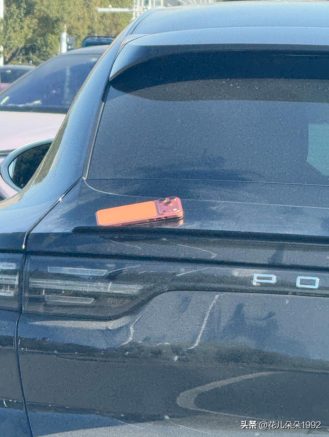 保时捷车主贴手机在车上能管几天? 今天开车碰到的,这个贴车上,应该很容易被抠吧,我的仿真塑料苹果一个星期就被人抠了。 不过也不排除是真手机,金额重大偷窃行为就要进去了。