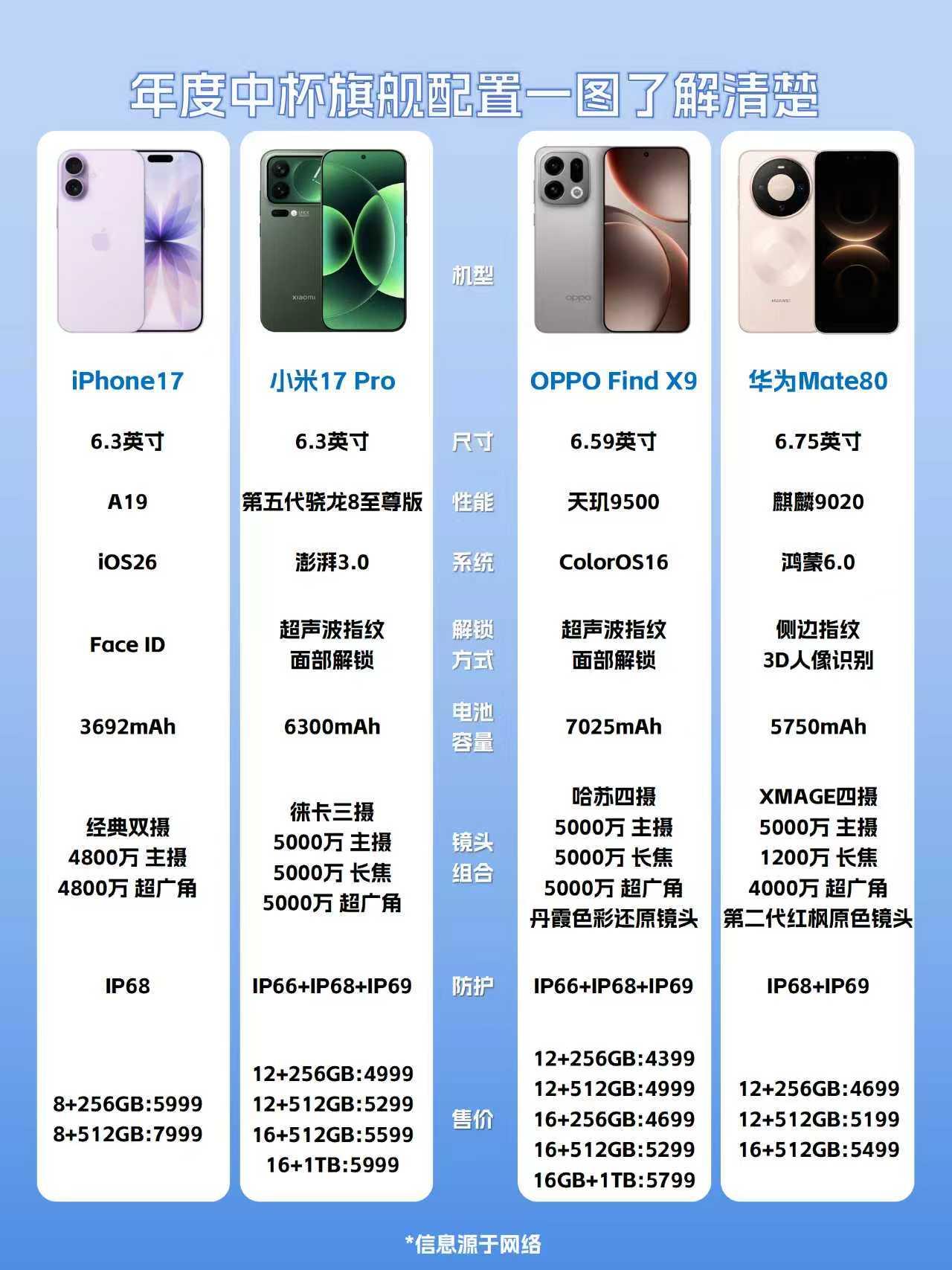 笑了,想买iPhone17朋友说国产不香吗? 相信有很多人和我一样纠结现在iPhone17这么香,该选国产还是苹果好? 这么说吧,iPhone17是适合果粉的新一代钉子户手机,120Hz高刷、40W快充、Pro同款屏幕...256g才5000多,用个三四年包ok吧。 - 国产这边的中杯旗舰其实更合适多数用户,毕竟5000多可以买512g的国产Pro旗舰了。 华为Mate80比上一代便宜了800,属实没想到,二代红枫加持的四摄,还是直屏,日常使用是ok,支持华为的花粉可入。 - 小米17Pro是比较独特,但骁龙8处理器和背屏,性能很厉害、背屏能自定义壁纸和拍照等等,喜欢背屏估计早心动了吧。 OPPO Find X9则是比较水桶的,7025mAh电池很大,哈苏四摄多强?下放到ultra级的丹霞色彩还原镜头,还能拍行业首发的4K超清live,拍人美就完事了。加上ColorOS16系统口碑出色,4000出头的性价比,适合多数学生党、打工人。 - 手机分享 手机攻略 手机推荐 华为 华为Mate80 苹果 iPhone17 小米 小米17Pro OPPO OPPOFindX9