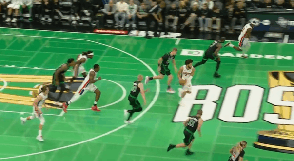 活塞观察:凯德-坎宁安对阵凯尔特人42+8+5图1持球大核、强力顺下终结者、侧翼神射的三人战术组,CC上线和邓罗、杜伦发动“Double Drag”,要到豪瑟换防后走右路突破,衔接胯下变向左路后对抗转身接近篮下后转身终结,造成干扰球。图2转换持球一条龙,双手暴扣。图3借助霍兰德的“Touch Screen”起手右路突破,途中使用“转髋加速”直杀篮下摆脱追防的沙伊尔曼上篮打进。图4高位呼叫杜伦挡拆,衔接挡拆之前佯装要使用“哈达威变向”走左路,伴随瞬间向左的重心偏移骗过了米诺特,实则使用“in&out”走掩护墙一侧,通过运球、变换重心加上杜伦的掩护延阻抢出投篮空间,立即使用“一二步”找到节奏后右手起球出手持球三分。图5慢动作细节呈现。图6上线持球操刀和杜伦、奥萨尔的“西班牙挡拆”(Stack)战术配合,沃尔什全程采取非常有针对性的“堵强势手侧”防守站位,站在CC的右前侧诱导其走左路。但CC偏要走右路,凭借“背转身误导”加上杜伦后续的掩护延阻直接摆脱开了身位,在衔接后续与奥萨尔的背掩护时面对布朗的换防,转身的同时小停顿随后迅速二次加速合球起步上篮打进2+1。图7,CC和杜伦、邓罗三人上线的“Middle Zoom”配合没出机会后,再衔接和杜伦的第二边路挡拆配合,踩进三分线内的“刺探急停”,随后迅速炸球撤步拉回,出手持球三分。图8邓罗“Middle Zoom”起手再衔接坎宁安的“Postol—Miami”战术:向右侧行进后迅速变向左路突破攻击普理查德前侧脚,突破行进间凭借体型、对抗优势一路碾到篮下,沉肩对抗摆脱普理查德后迅速炸球起身抛投打板命中。图9“拒绝掩护”后“拜佛”启动左路突破,沉肩对抗创造出投篮空间后迅速衔接后撤步后仰中投,顶着两人防守稳稳命中。坎宁安空砍42分凯尔特人终结活塞13连胜