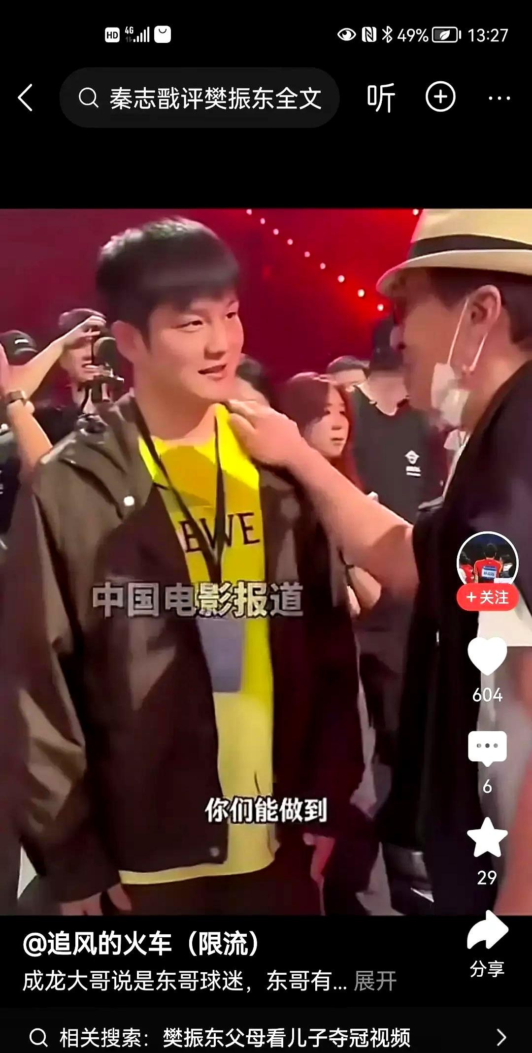 成龙在采访里直接说自己是樊振东的粉丝。 一个国际巨星对着镜头追星,乒协官博也出来帮正在训练的小胖收下这份跨圈宠爱。 老前辈就是看到了年轻人为国争光,忍不住站出来为他鼓掌。 一个用拳头打天下,一个用球拍护国旗,他们都在用自己的方式把中国的名字写给世界看。