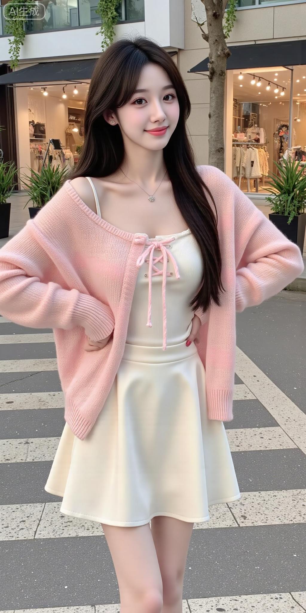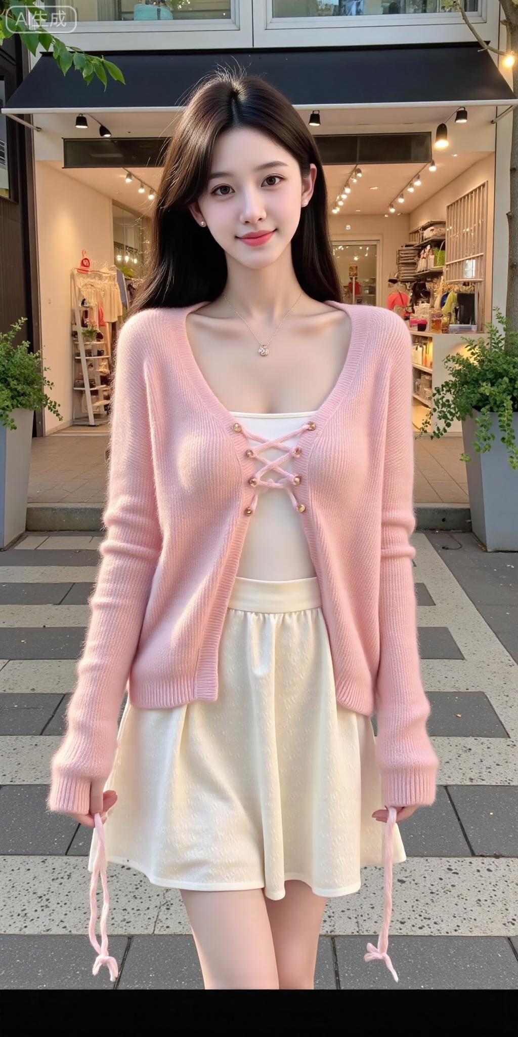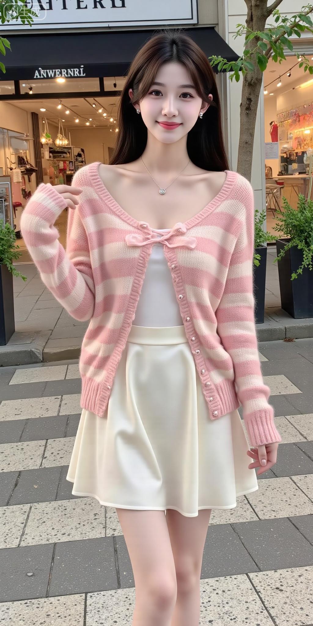 粉白条纹绑带开衫配奶黄短裙,甜欲少女氛围感拉满米色背心连衣裙 紫色t恤套装裙 紫色开衫吊带裙