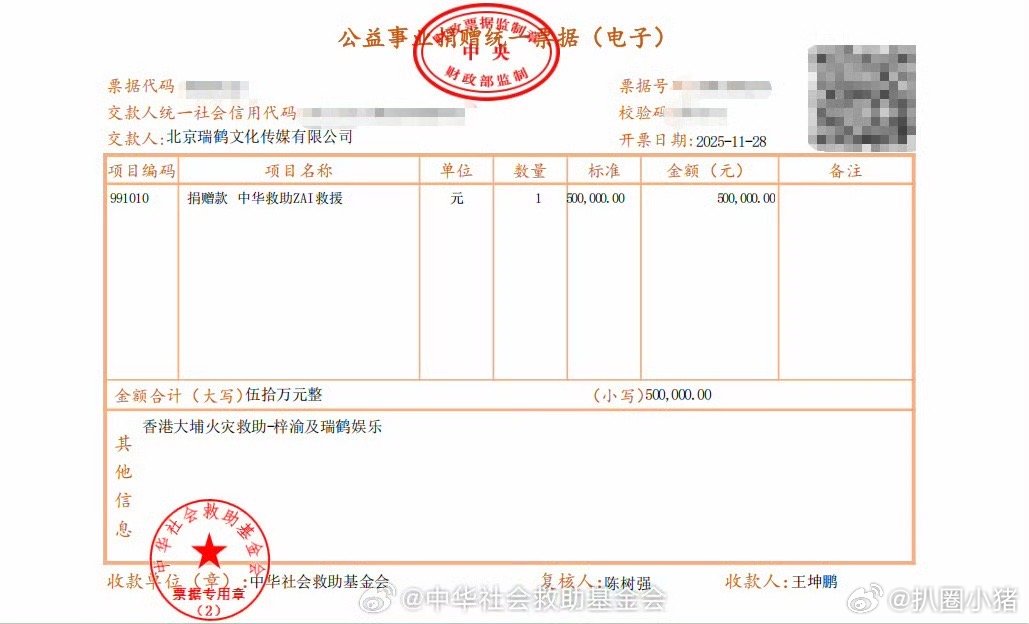 梓渝向香港捐款50万元助受灾同胞重建家园。愿伤者早日康复,家园尽快恢复安宁。一起为香港加油!