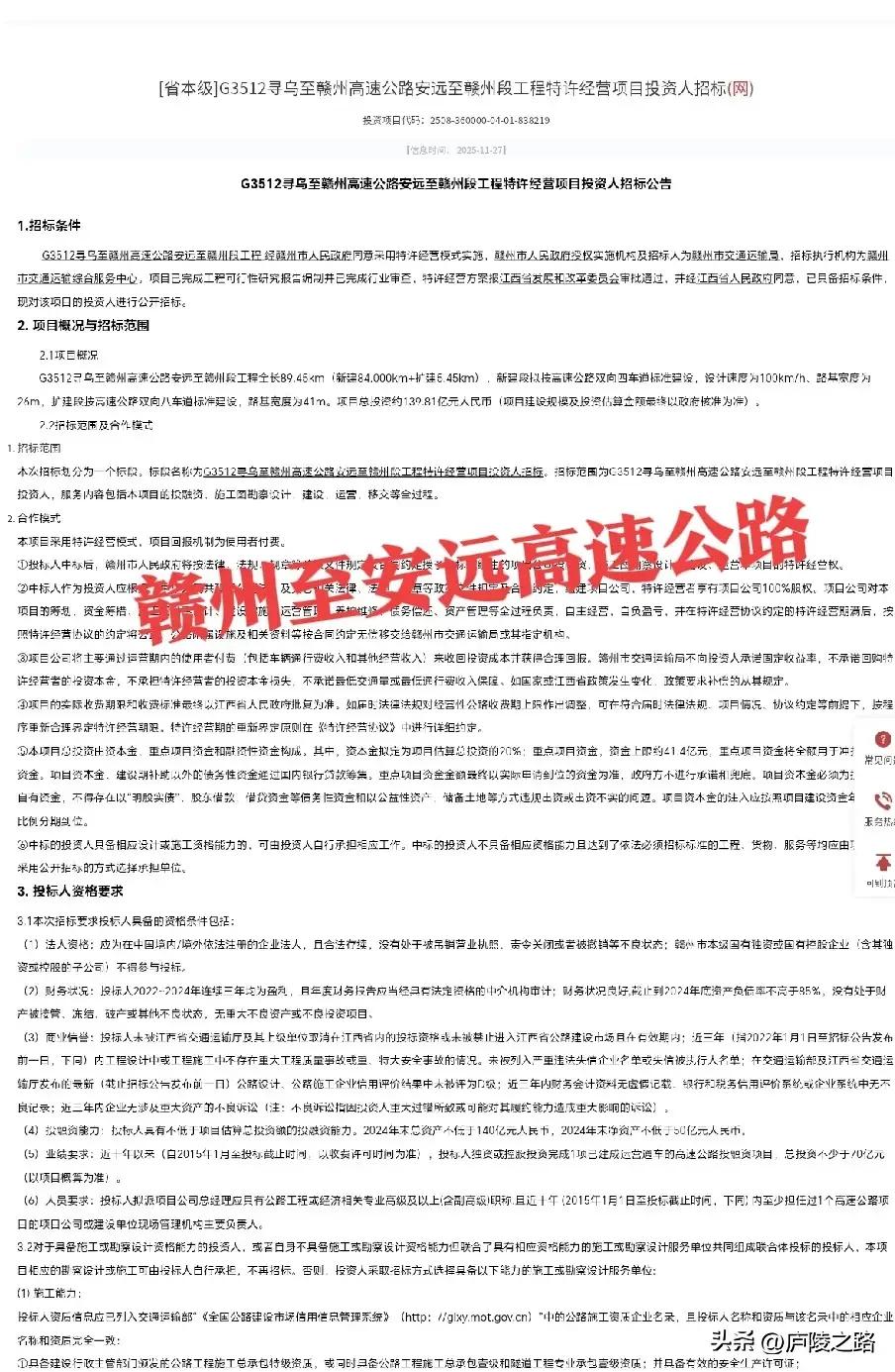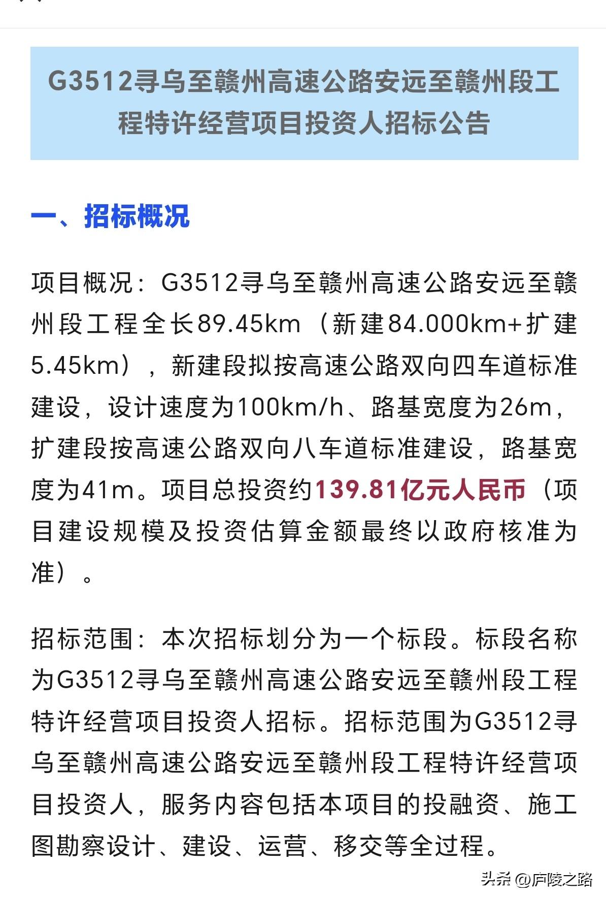 好消息!总投资139.8亿的赣州至安远高速公路有新进展啦。 此次招标的是安远至赣州段特许经营项目投资人。遗憾的是,安远至寻乌段未能如期进行统一招标。 赣州至安远高速公路是赣州南下的又一条重点高速公路,建成后将大幅缩短赣州市区市区与安远县、寻乌县、梅州、潮汕地区等地的往来距离。
