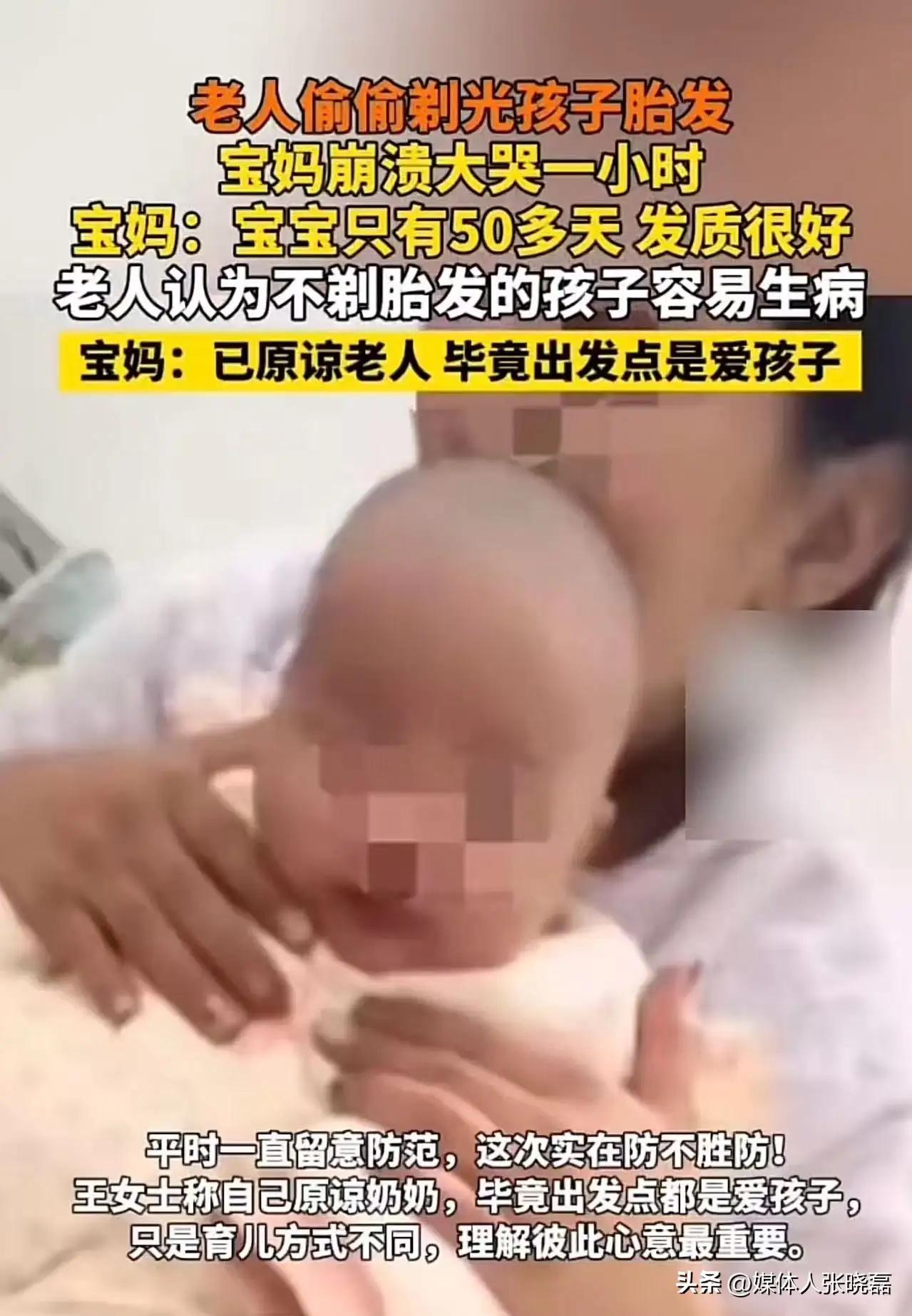 河南南阳icon,老人偷偷剃光孩子胎发,宝妈崩溃大哭一小时!宝妈:“宝宝只有 50 多天,发质很好,老人认为不剃胎发的孩子容易生病,趁我不在家把他的头发剃掉了……”网友:我觉要不要剃胎发,还是得孩子的爸妈去决定,虽然出发点是好的,但是边界感icon很重要! 王女士家的宝贝才50多天大,那小家伙的胎发乌黑发亮、柔顺丝滑,摸起来软软的,就像绸缎一样。 王女士平时可宝贝这头发了,没事就轻轻抚摸,满心都是对孩子的疼爱。 这天,王女士因为有急事需要外出半天,便把孩子托付给了自己的奶奶照顾。可等她办完事匆匆赶回家,一打开家门,眼前的一幕让她瞬间愣住了! 原本乌黑亮丽的小头发,竟然变成了光溜溜的“光头”!那一瞬间,王女士的心像被针扎了一样刺痛。她的宝贝,才50多天,发质如此好,柔软细腻,像天鹅绒一样的胎发,竟被悄无声息地剃光了!这究竟是怎么回事?为什么奶奶会做出如此“激烈”的决定? 事情的真相令人心碎。原来,奶奶出于传统迷信的想法,认为胎发代表着“邪气”,不剃掉孩子的胎发,孩子就容易生病、长不健康。她觉得,趁着王女士不在,把宝宝的“护身符”——胎发剃掉,是为了“保平安”。但她没有想到,这样的“爱”,却带来了巨大的伤害。 面对突如其来的变故,王女士崩溃了。她坐在地上,眼泪止不住地流,整整哭了一个小时。那哭声里,满是对孩子的心疼和对奶奶的无奈。她的心在滴血——这不仅仅是发丝的损失,更是对家庭界限、传统观念与科学育儿之间的冲突的深刻写照。 其实,很多年轻父母都遇到过类似的困扰。传统观念深植人心,老人们相信“剃胎发”能带来平安和健康,但科学告诉我们,胎发不过是成长的一个自然阶段,没有任何“迷信”能真正影响孩子的健康。更何况,宝宝的身体娇嫩,随意剃发可能带来皮肤伤害,甚至影响毛囊发育。 这场“剃发风波”,折射出家庭中代际价值观的碰撞,也提醒我们:爱不是盲从,而是用理性和尊重去呵护。父母和长辈之间的界限感,尤为重要。我们要学会在传承与创新中找到平衡点,用科学的方式守护孩子的未来。 网友们的讨论也异常激烈。有的人觉得,老人出于善意,爱孩子的心是真的;但也有人呼吁,尊重科学、尊重孩子的身体自主权,才是正确的做法。毕竟,爱不是盲目的迷信,而是用理性守护每一份纯真的生命。 这件事让我们再次思考:家庭的温暖,应该建立在理解和尊重的基础上。我们期待,未来的家庭中,爱与理性同行,传统与科学共存,让每一个孩子都能在温暖、理智的呵护中健康成长。 你怎么看?你身边是否也有类似的“传统与现代”的故事?欢迎留言分享,让我们共同用爱与理性,守护下一代的幸福!头号周刊