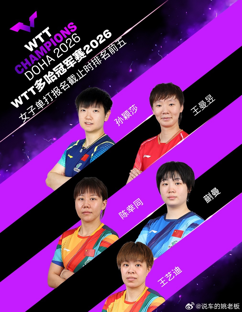 王楚钦缺席WTT多哈冠军赛刚看到名单直接心头一紧!那个三战多哈全胜、拿过世乒赛冠