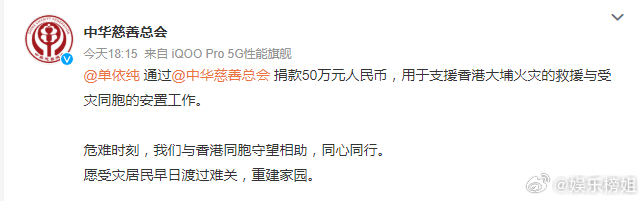 单依纯捐款50万单依纯捐款50万支援香港,愿早日渡过难关,重建家园