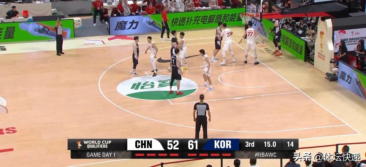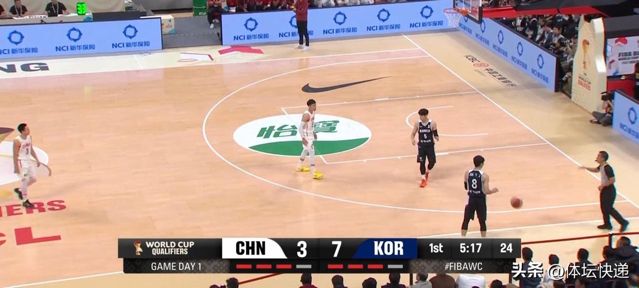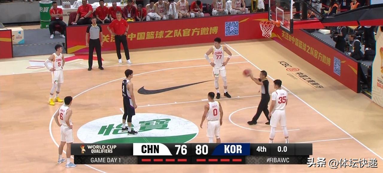 主场完败!!!男篮世界杯预选赛中国男篮负韩国男篮开门黑。因球员调整,中国男篮派出高诗岩,胡金秋,朱俊龙,曾凡博,周琦的先发五虎?首节开始,中国男篮进攻效率低下,韩国男篮外线频频中的,10:3领先。中国男篮叫暂停。暂停回来,中国男篮解决了进攻问题,但在防守韩国外线方面不力。首节结束,中国男篮16:24落后。第节中国男篮依旧攻击内线为主,加强对韩国男篮的外线防守。韩国队叫暂停。暂停回来,中国男篮进攻依迷,多次绝佳机会不进,韩国队趁机扩大分差。郭士强指导调兵遣将,但未能有效解决问题。半场结束,中国男篮34:47继续落后。第三节中国男篮战术依旧僵硬,强打内线。而韩国男篮则越打越有信心,分差进一步扩大。比赛末段,中国男篮连续反击得手,将分差缩小到个位数。三节战罢中国男篮52:61继续落后。第四节开局,韩国男篮连下8分,直接打停中国男篮。暂停回来,中国男篮进攻仍然单调无奇。而韩国男篮越打越放松。尽管张镇麟结束前连下8分,也无力挽回败局。全场比赛结束,中国男篮76:80韩国男篮,遭遇开门黑!!!
