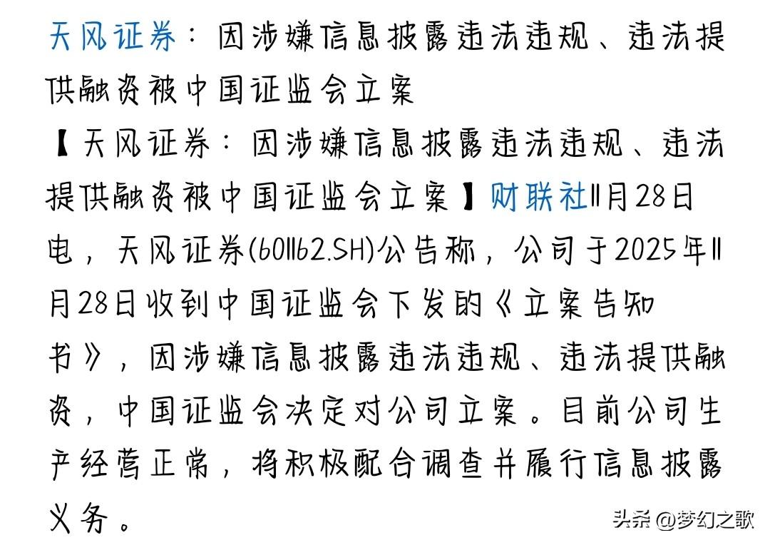 证券板块本身就没有涨,还出现这么大的利空,事出反常必有妖 天风证券被证监会立案调查了,原因是违规违法提供融资。 今年证券板块一共才涨了4.9%,然而大盘已经涨了16.02%,远远的落后于大盘的涨幅,这个时候证券板块出现这种利空确实有点难受,周一板块肯定会受到影响。 但由于板块的估值水平一直地板上,再往下跌就是机会,这时候证券板块就很有性价比了,尤其是没有利空那些个股将会成为遗珠。 下周要看证券板块的表现了,预计应该会有很大机会。